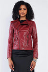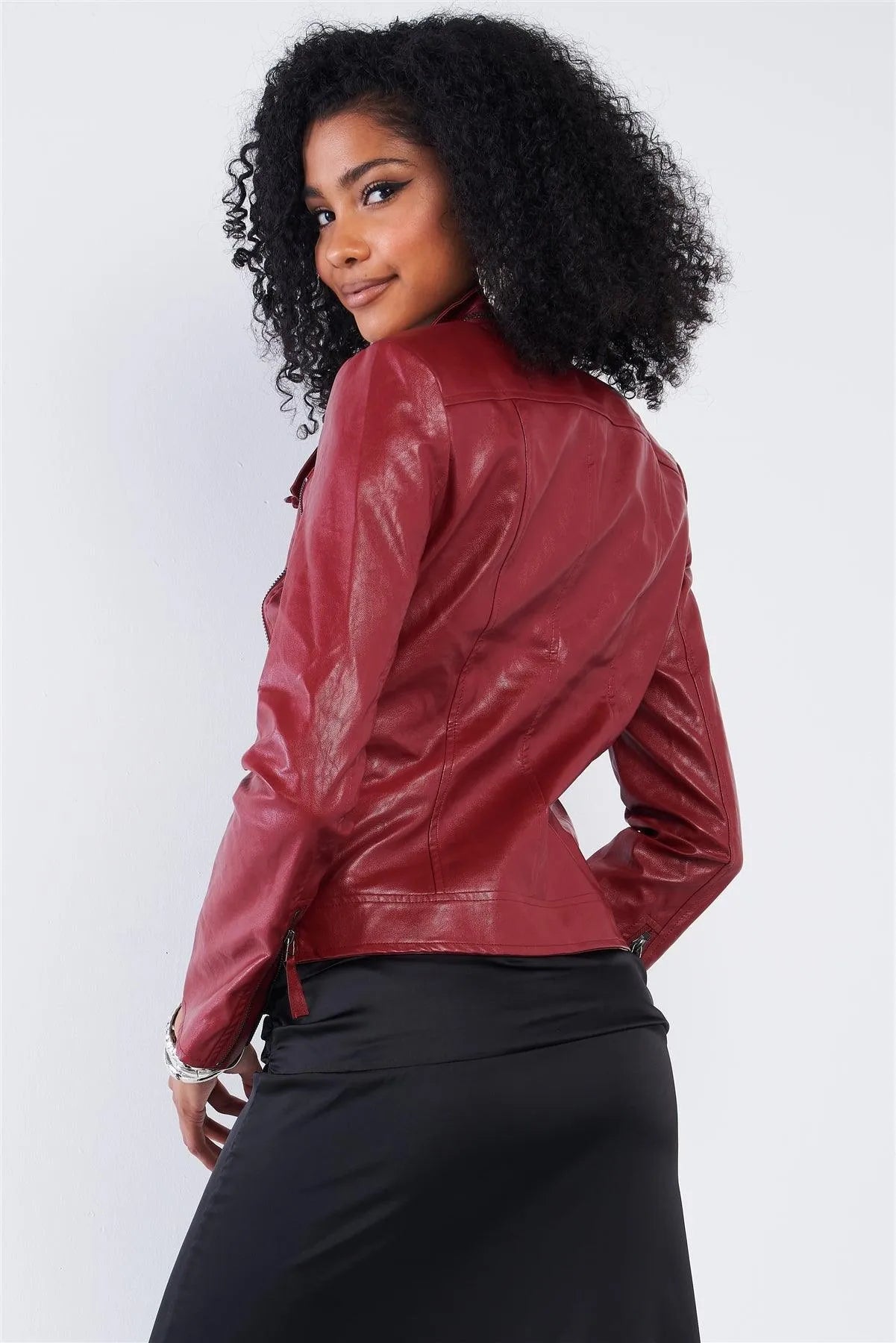 Red Vegan Leather Multiple Zipper Accent Biker Jacket /2-2-2