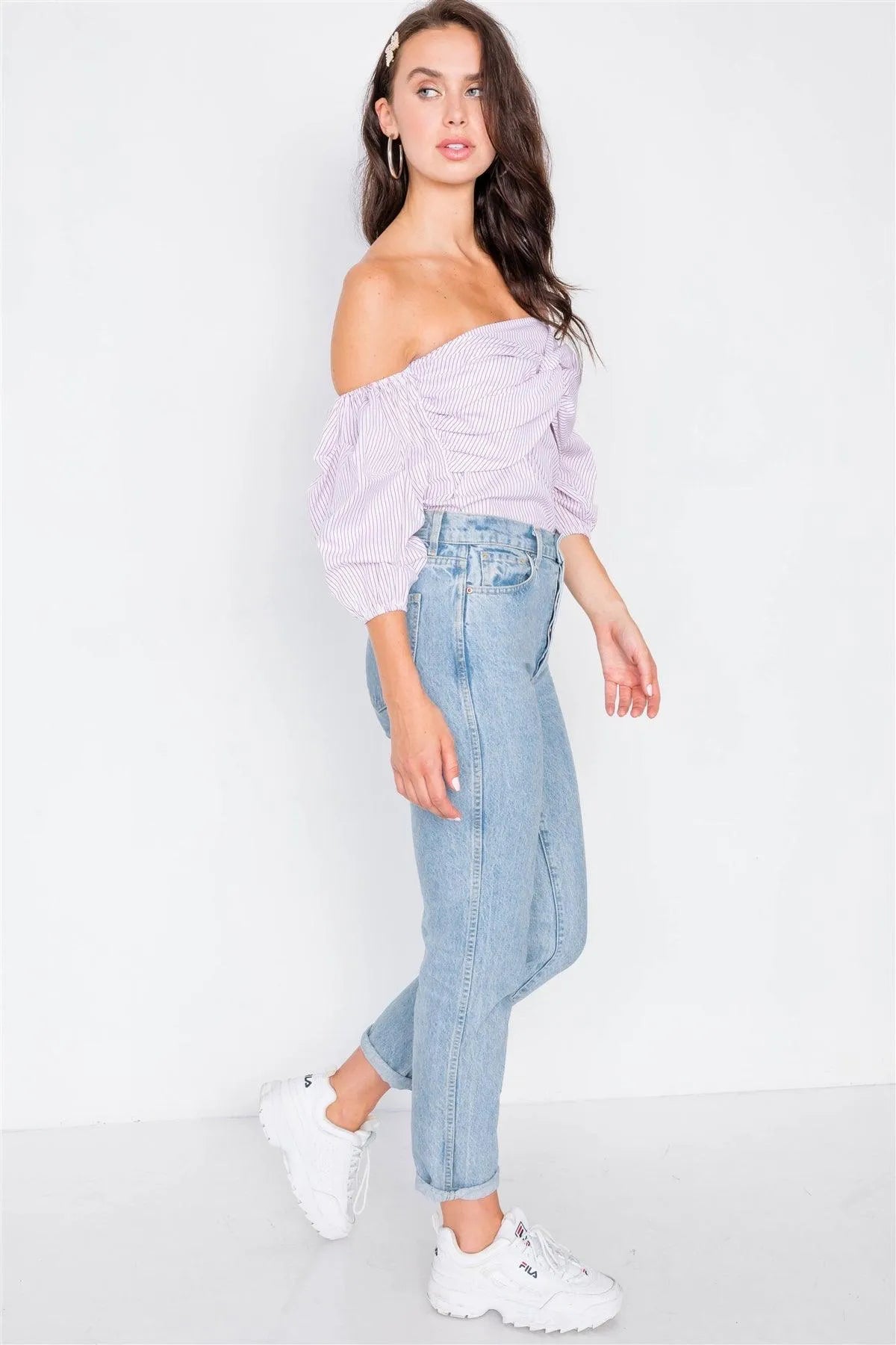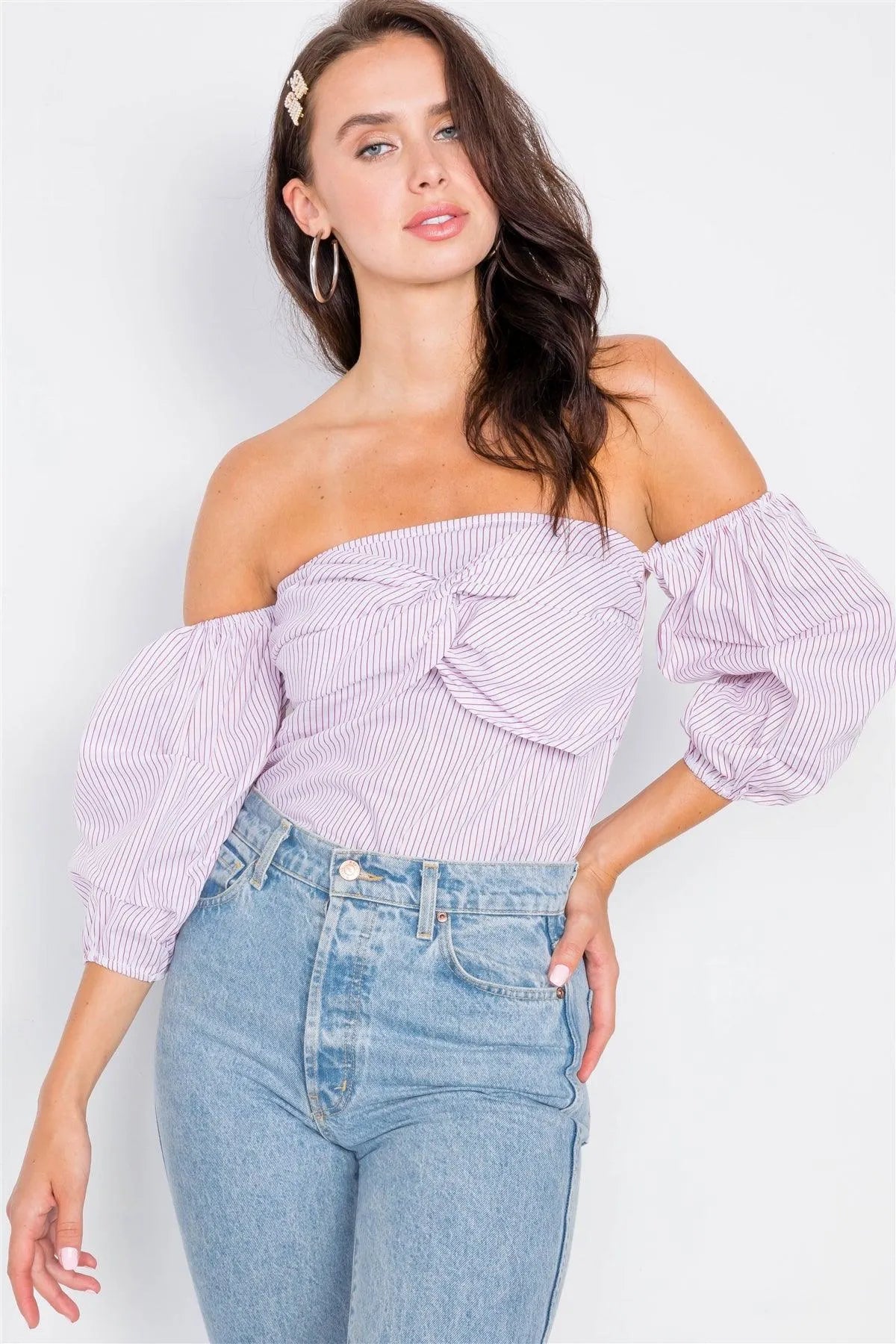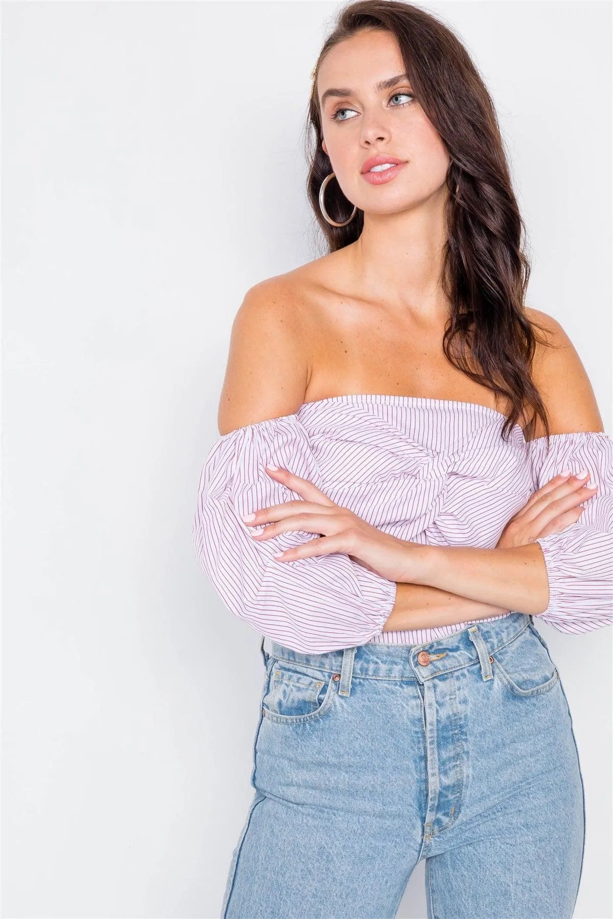 Red & White Puff Off-The-Shoulder 3/4 Sleeve Top /2-2-2