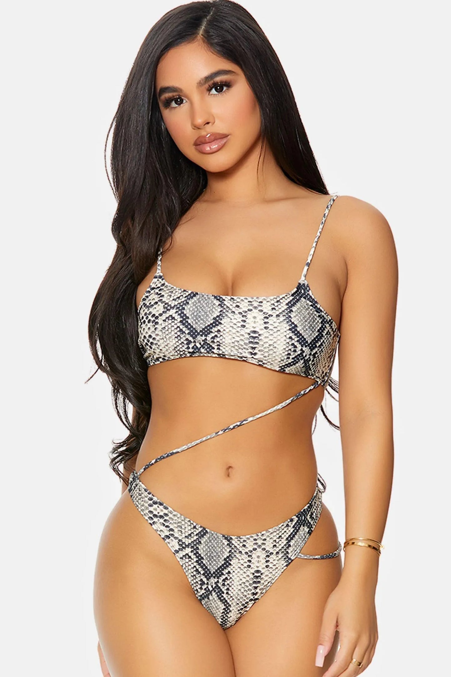 Reptile Print Bonaire Diagonal Strappy Hip One Piece Swimsuit