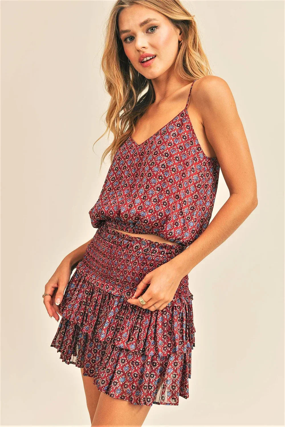 Lightweight Floral Print Spaghetti Strap V-Neck Elastic Band Marie Crop Cami Top