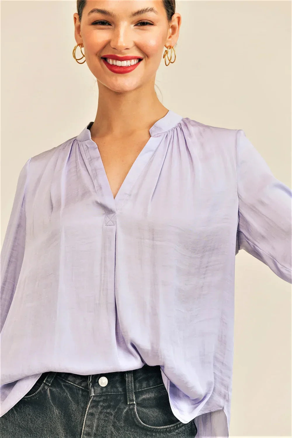 Stay effortlessly elegant and beautifully versatile with our Gathered Shoulder V-Neck Long Sleeve Flowing Blouse. This sophisticated piece features romantic gathered shoulders that create gorgeous texture and movement, paired with a flattering V-neckline that elongates the silhouette. The flowing oversized fit delivers comfort without sacrificing style, while the lightweight fabric drapes beautifully for an elevated everyday look. Available in four stunning colorways - crisp white, soft lavender, dusty rose, and warm taupe - this blouse is the perfect foundation piece. Perfect for workwear collections and transitional styling, this women's blouse delivers timeless sophistication with a touch of romantic femininity.