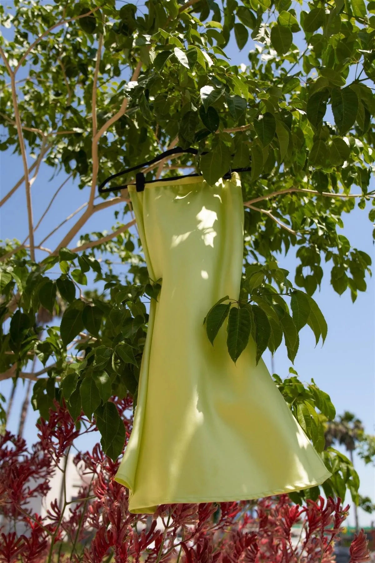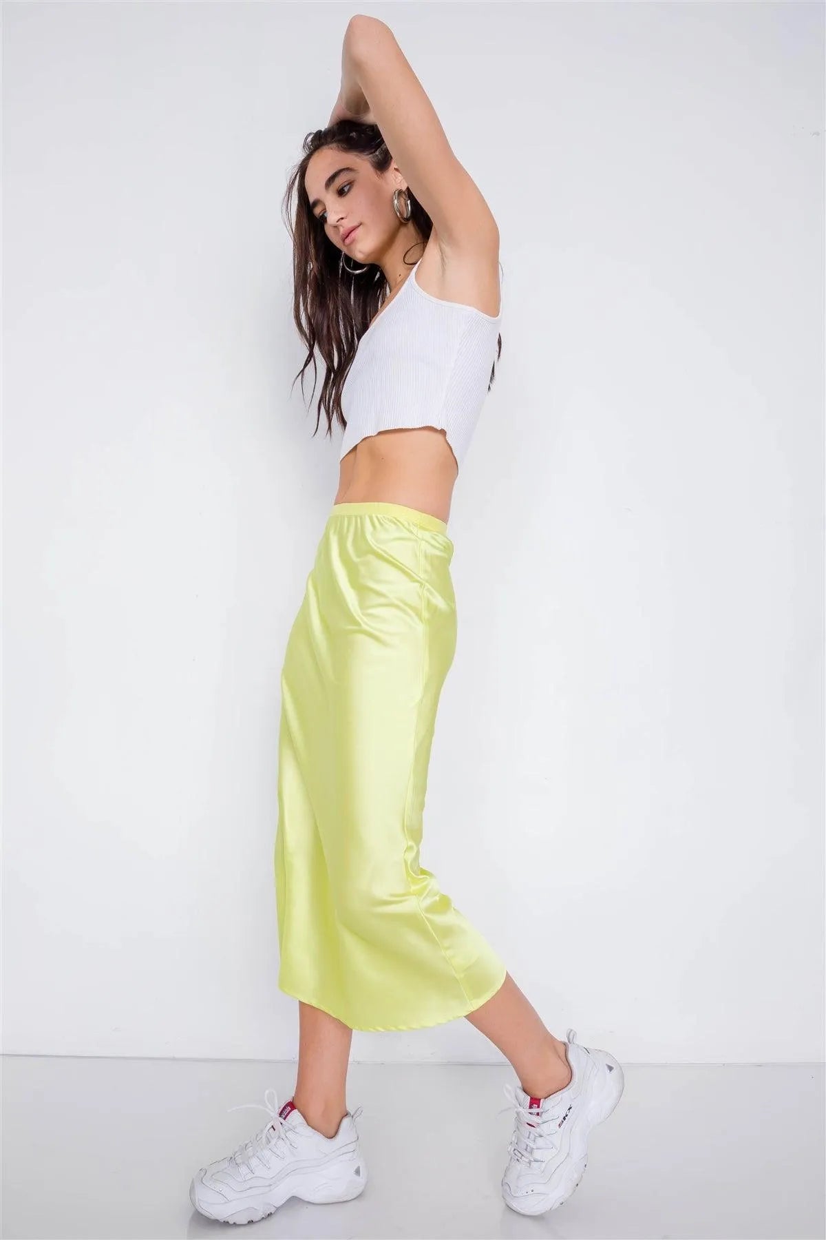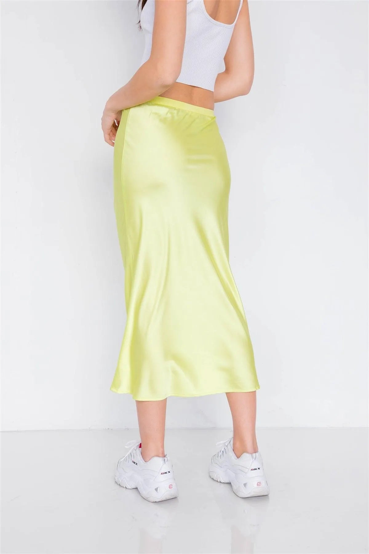 Retro Neon Lime Silk Round Hem Midi Skirt /3-2-1