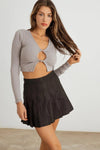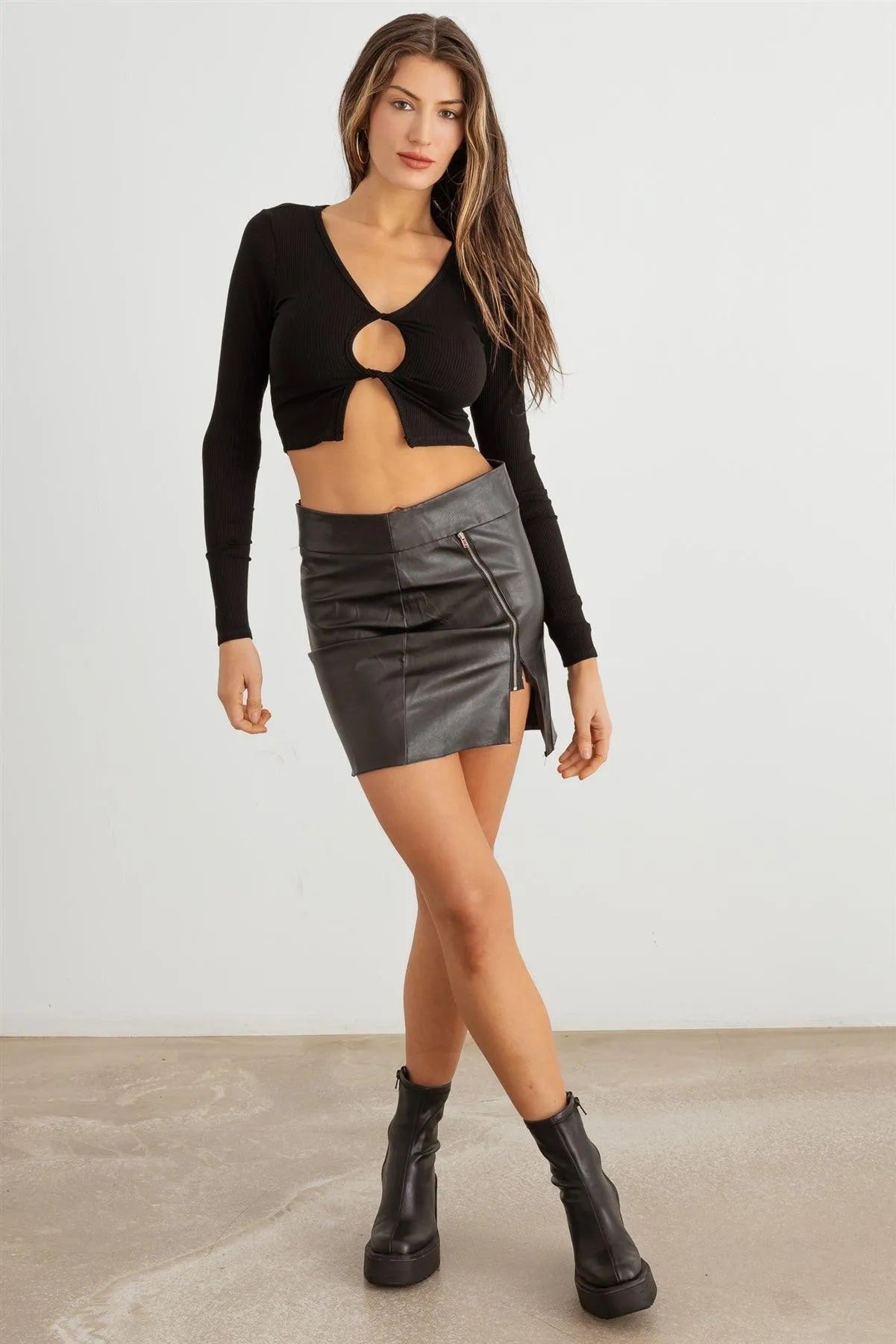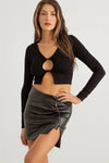 Ribbed Front Cut-Out Twist Long Sleeve Crop Top