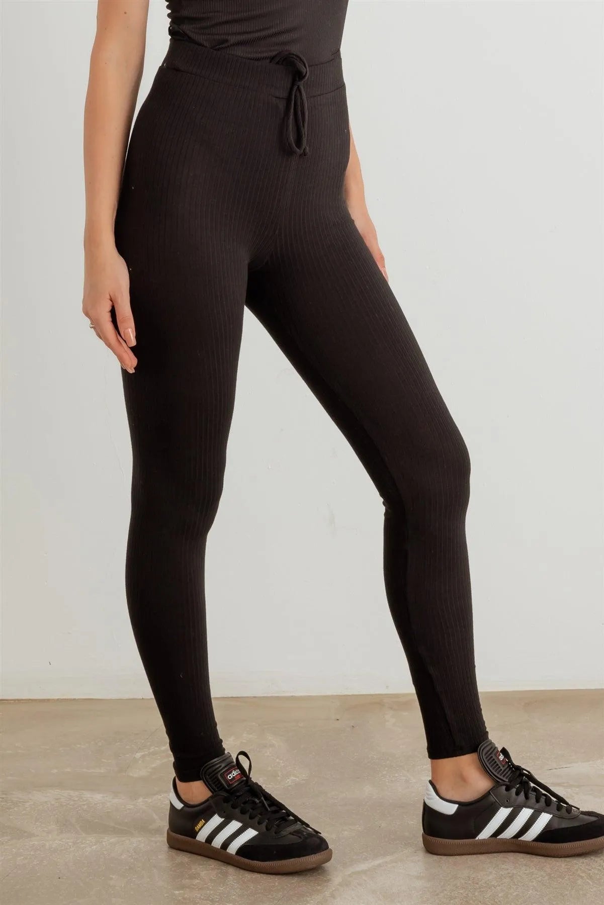 🖤 Achieve both comfort and style with our Ribbed High Waist Drawstring Front Tie Leggings. The ribbed design adds texture and the high waist provides a flattering fit. The drawstring and front tie offer customizable comfort. Perfect for any occasion.