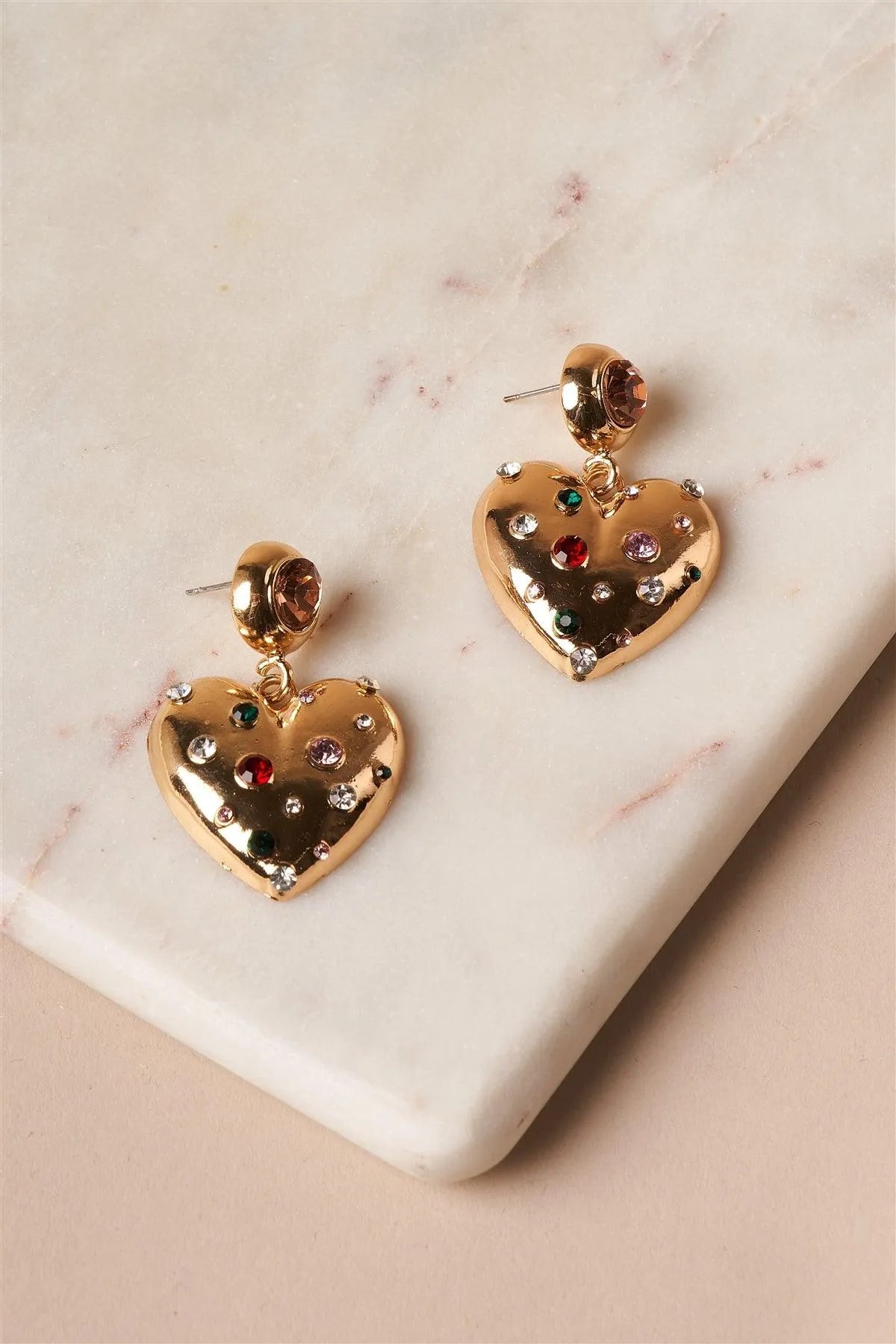 Rose Gold Multi Heart Drop Earrings /6 Pieces