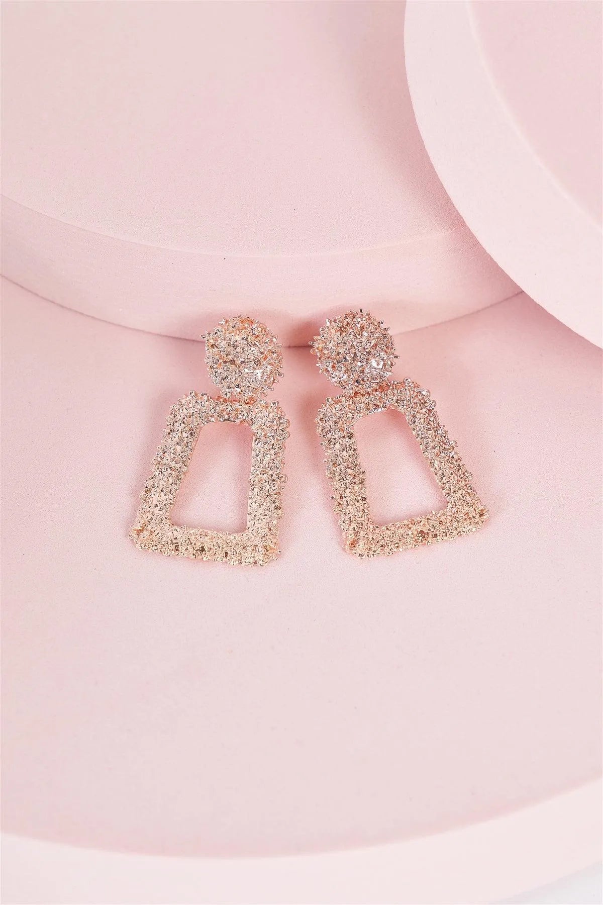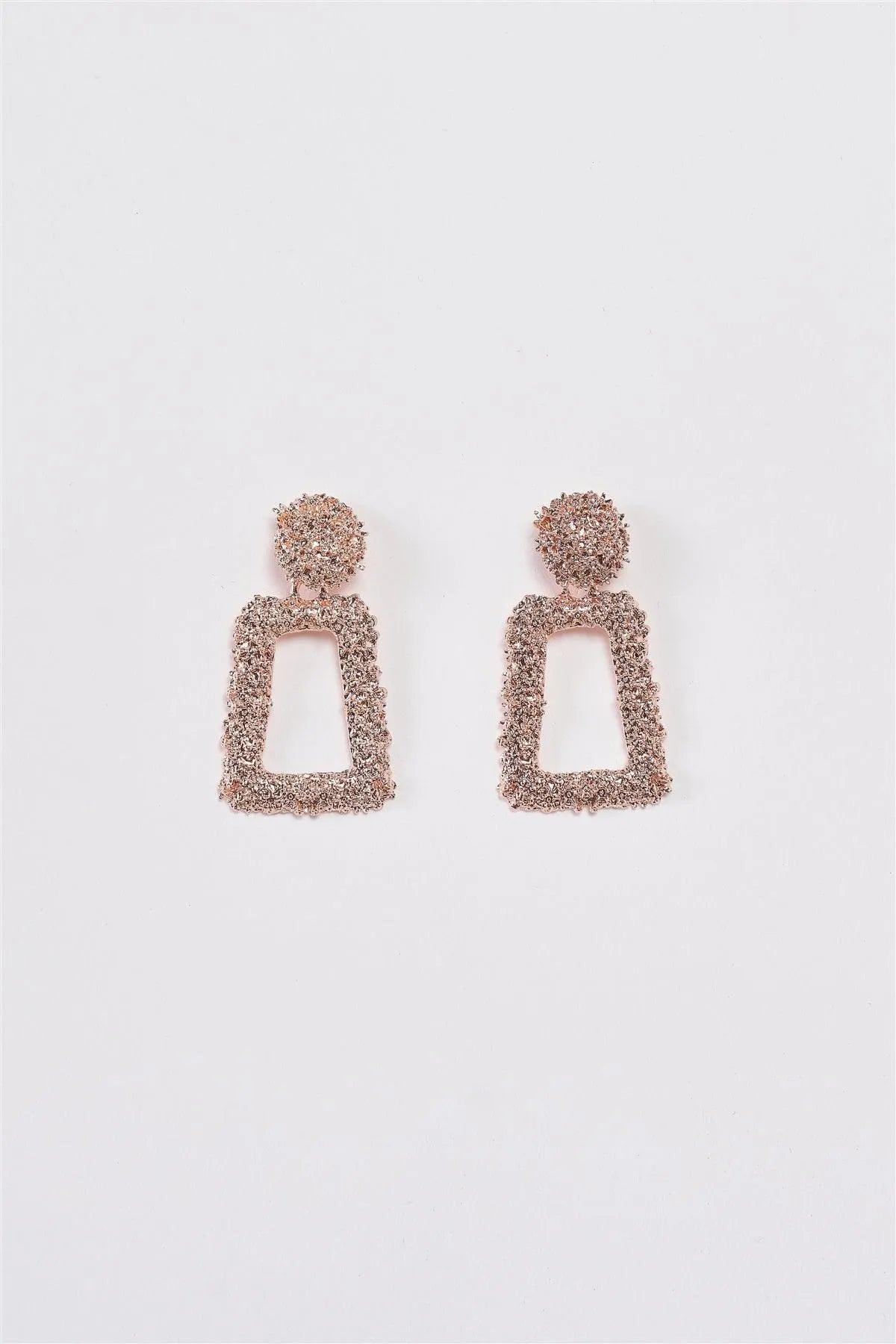 Rose Gold Textured Trapezoid Drop Earrings /3 Pairs