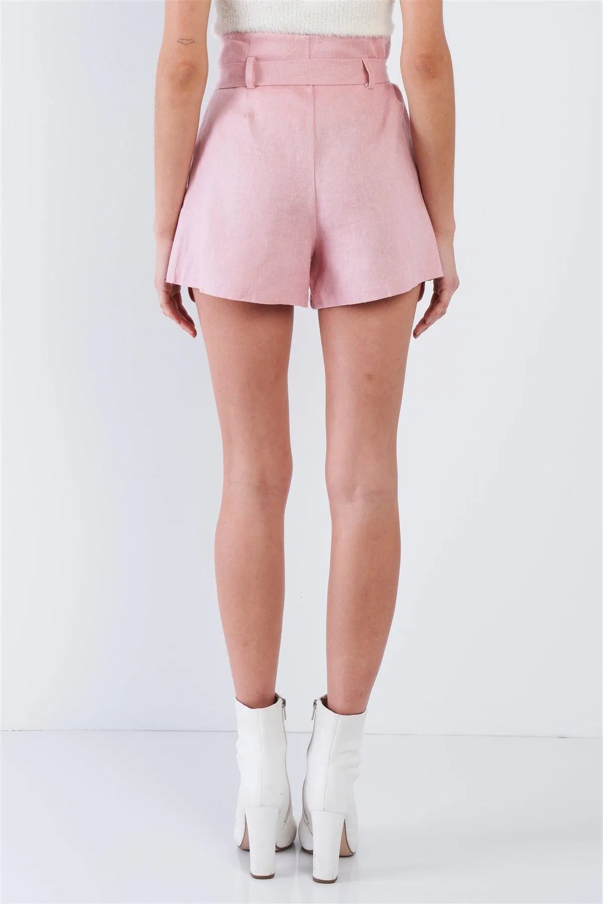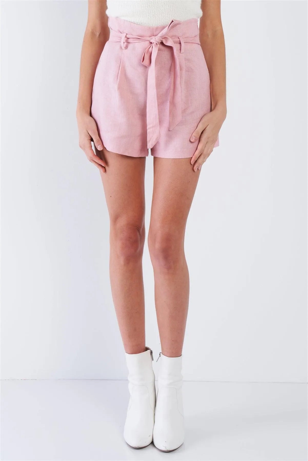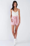 Rose Pink Pleated High Waist Self Tie Sash Mini Chic Shorts