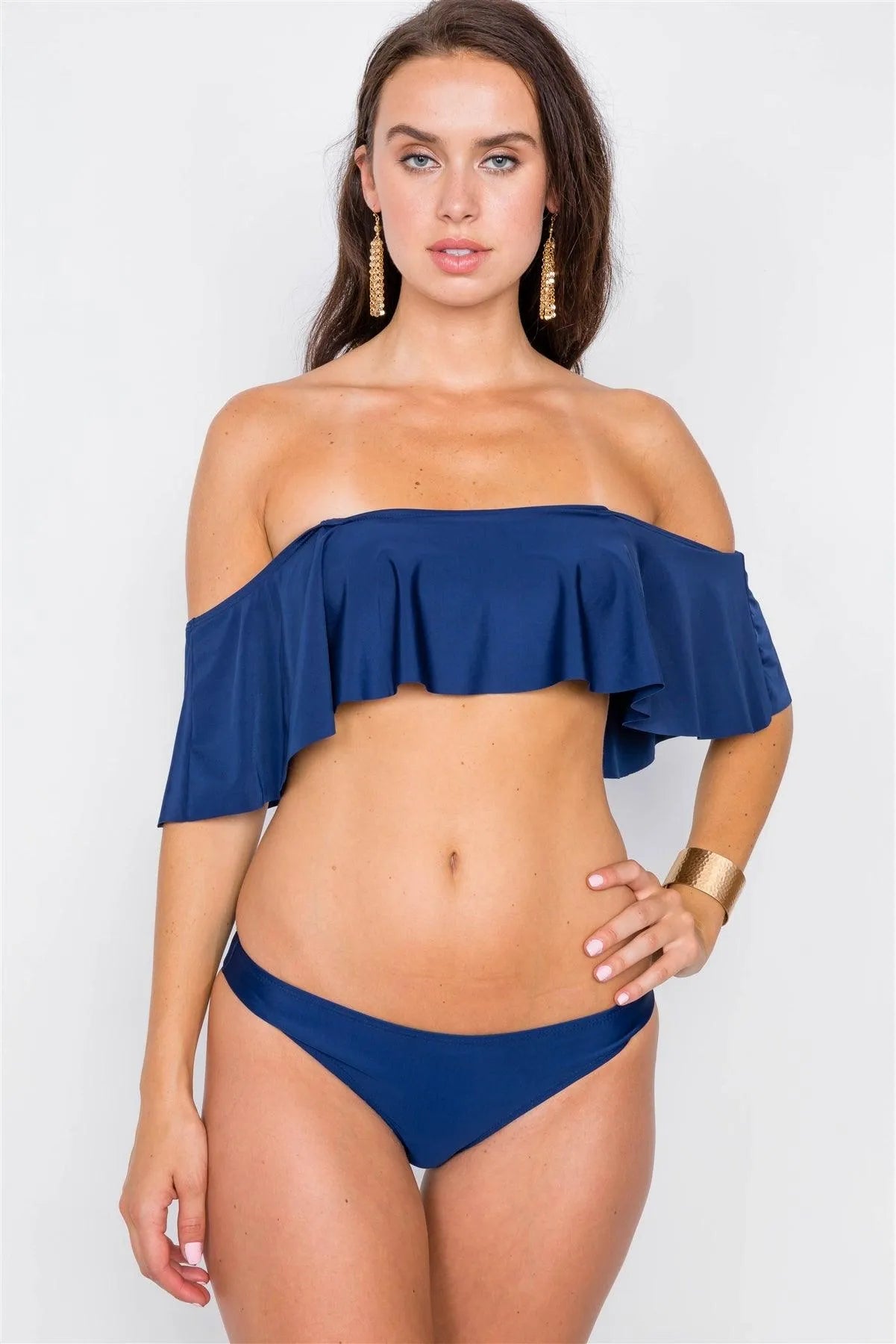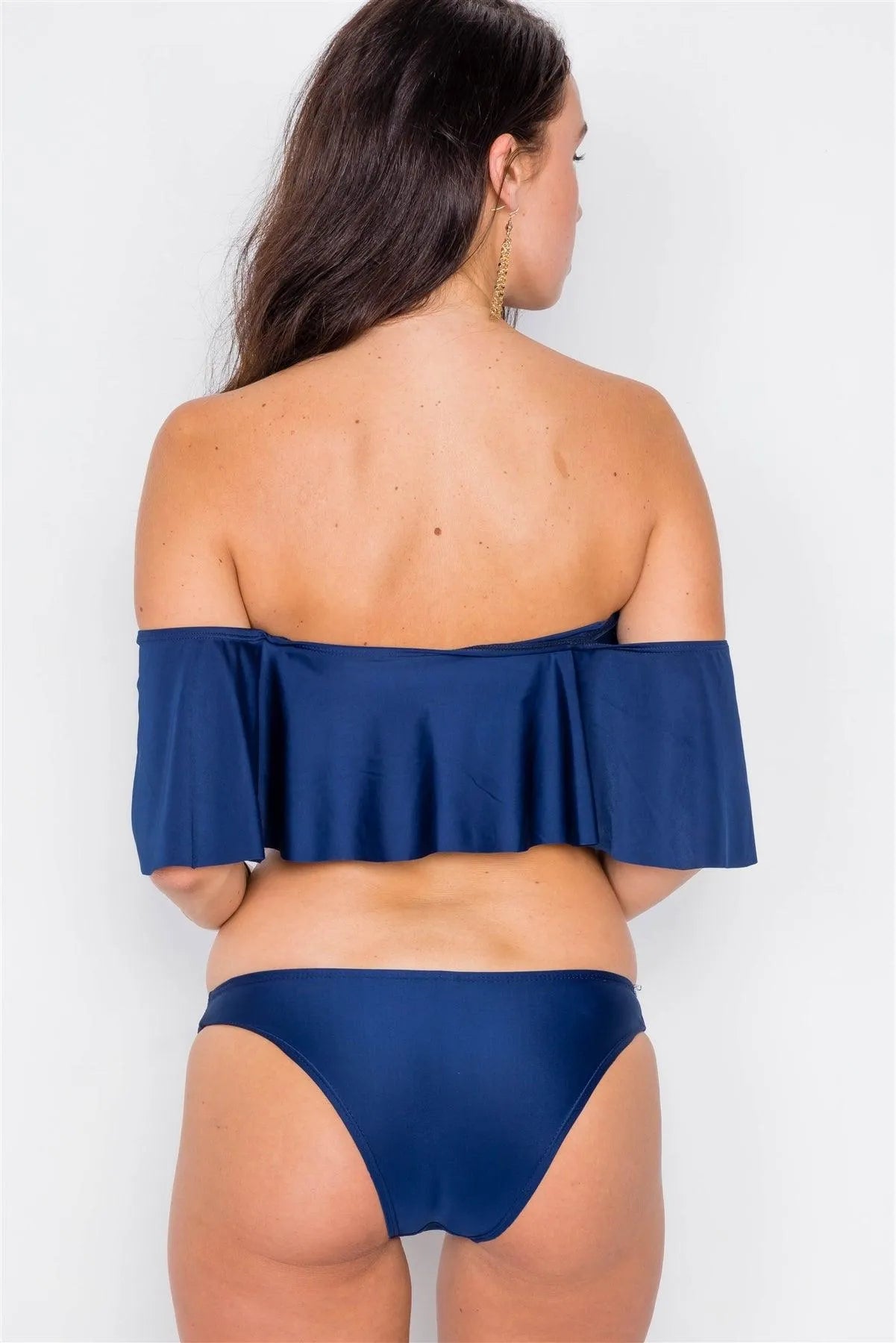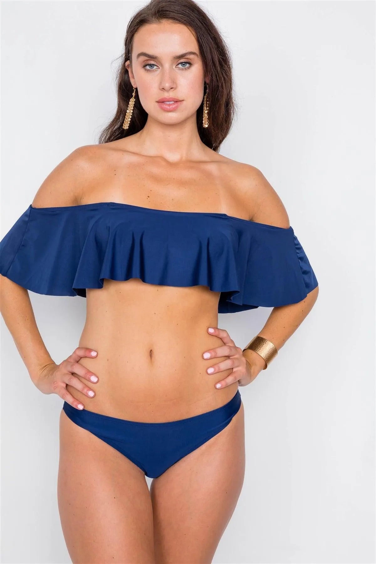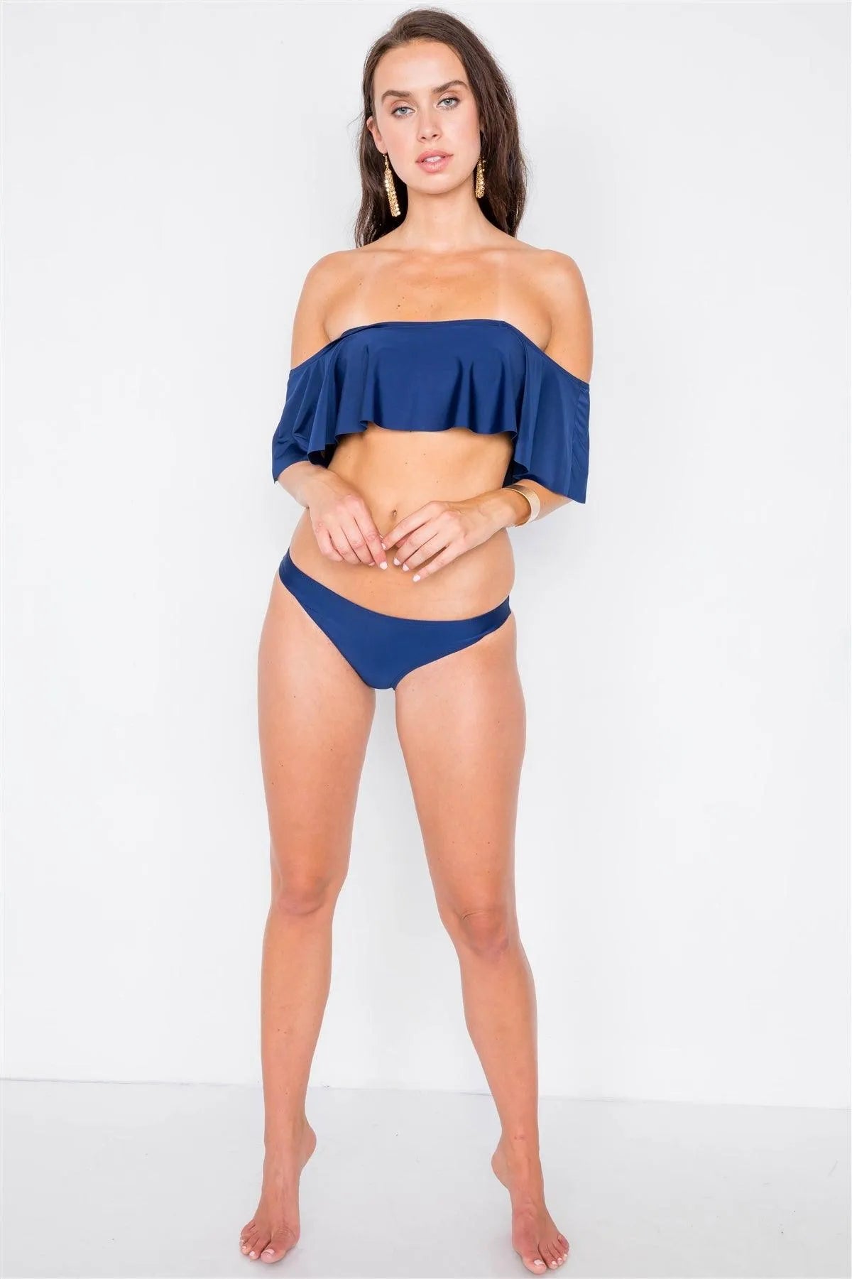 Royal Blue Solid Strapless Flounce 2 Piece Bikini