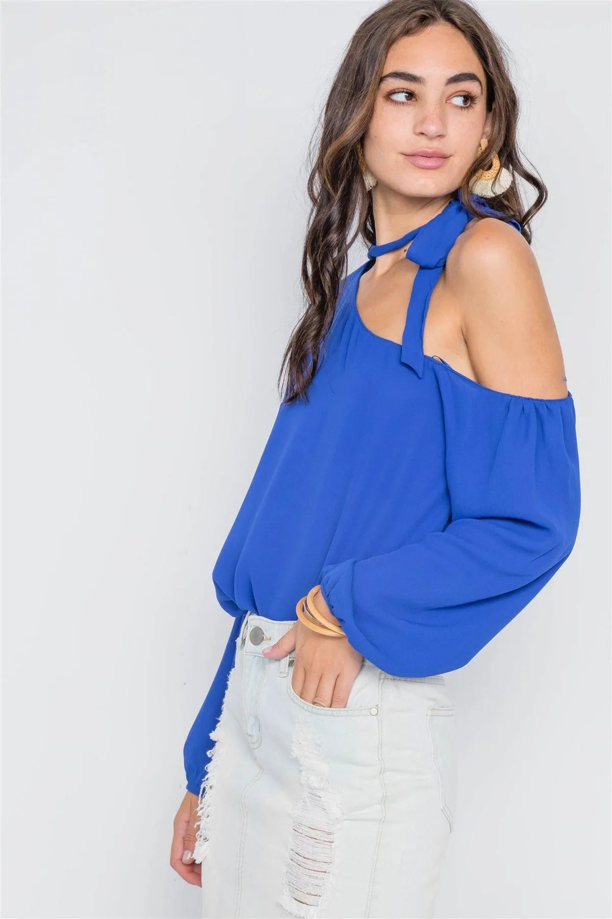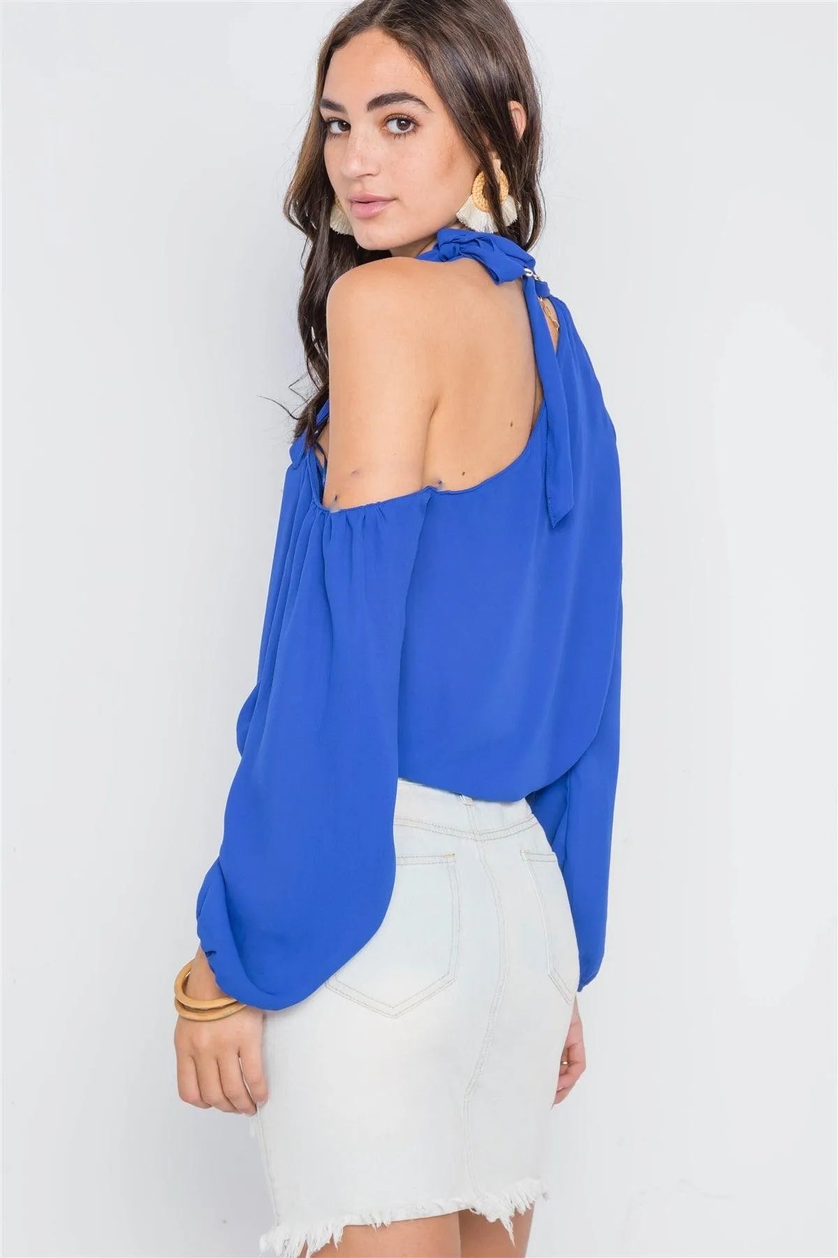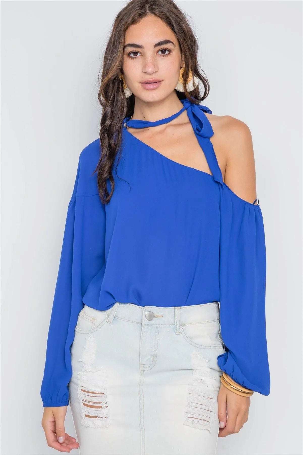 Royal Blue Open Shoulder Front-Tie Top /2-2-2