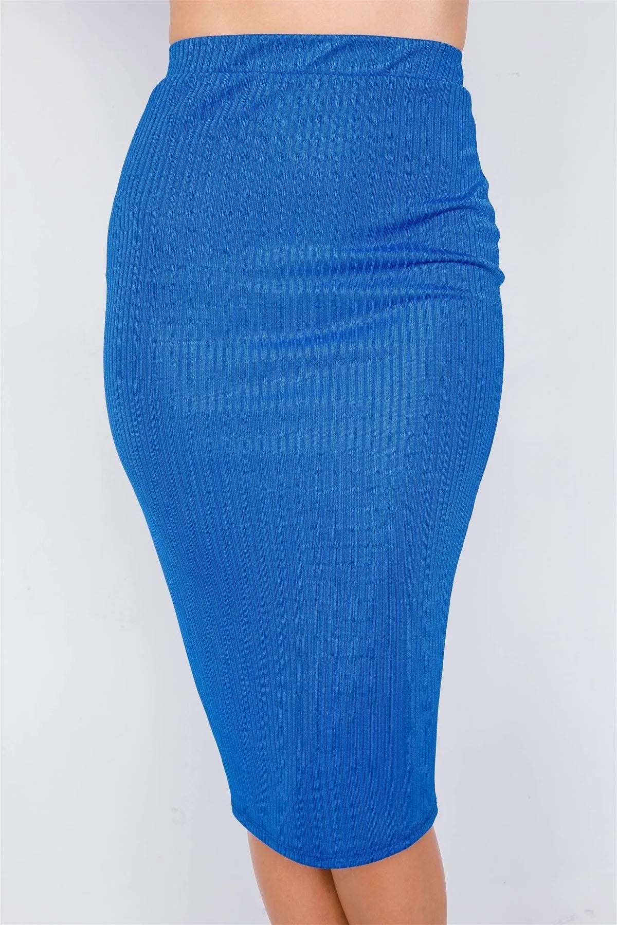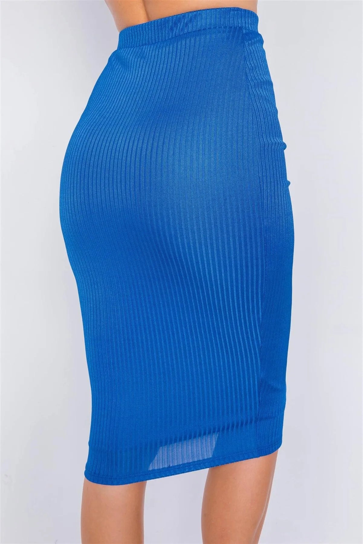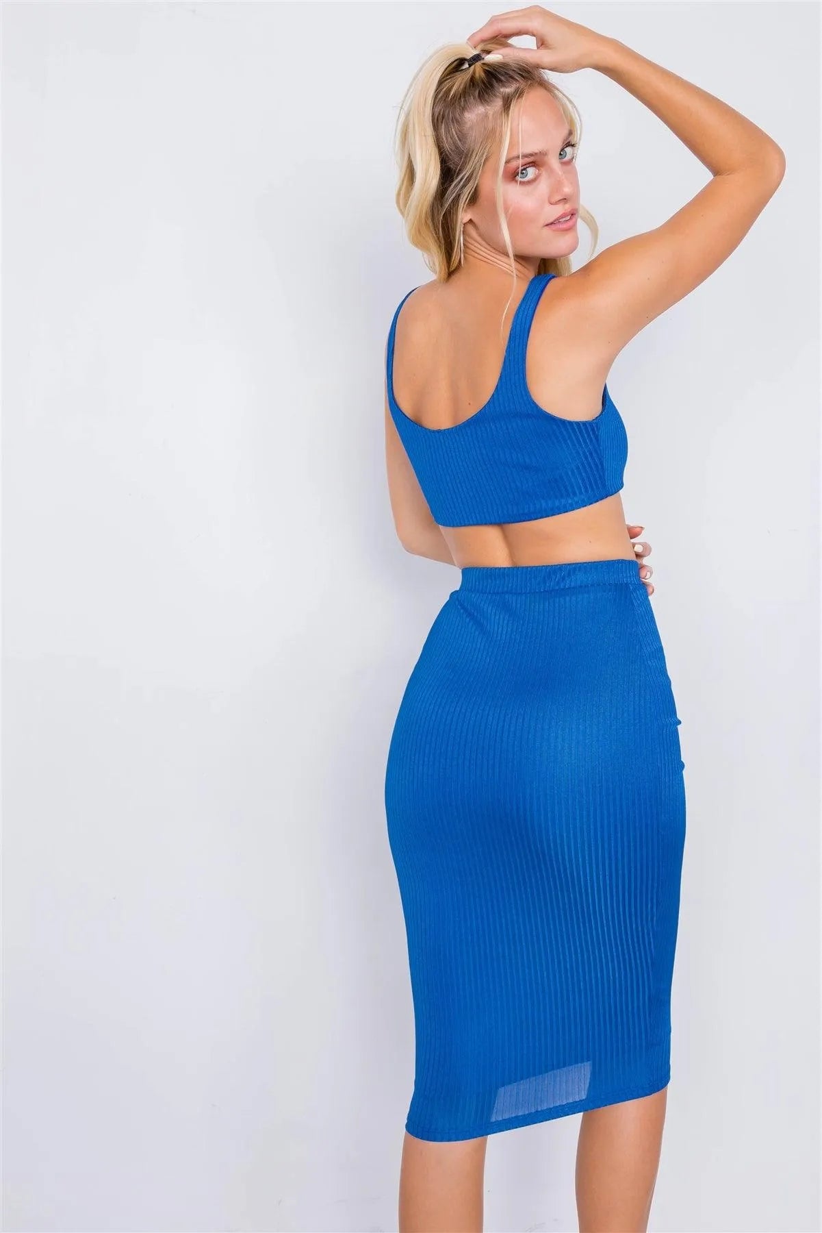Royal Blue Ribbed Square Neck Crop Top & Mini Bodycon Skirt Set /3-2-1