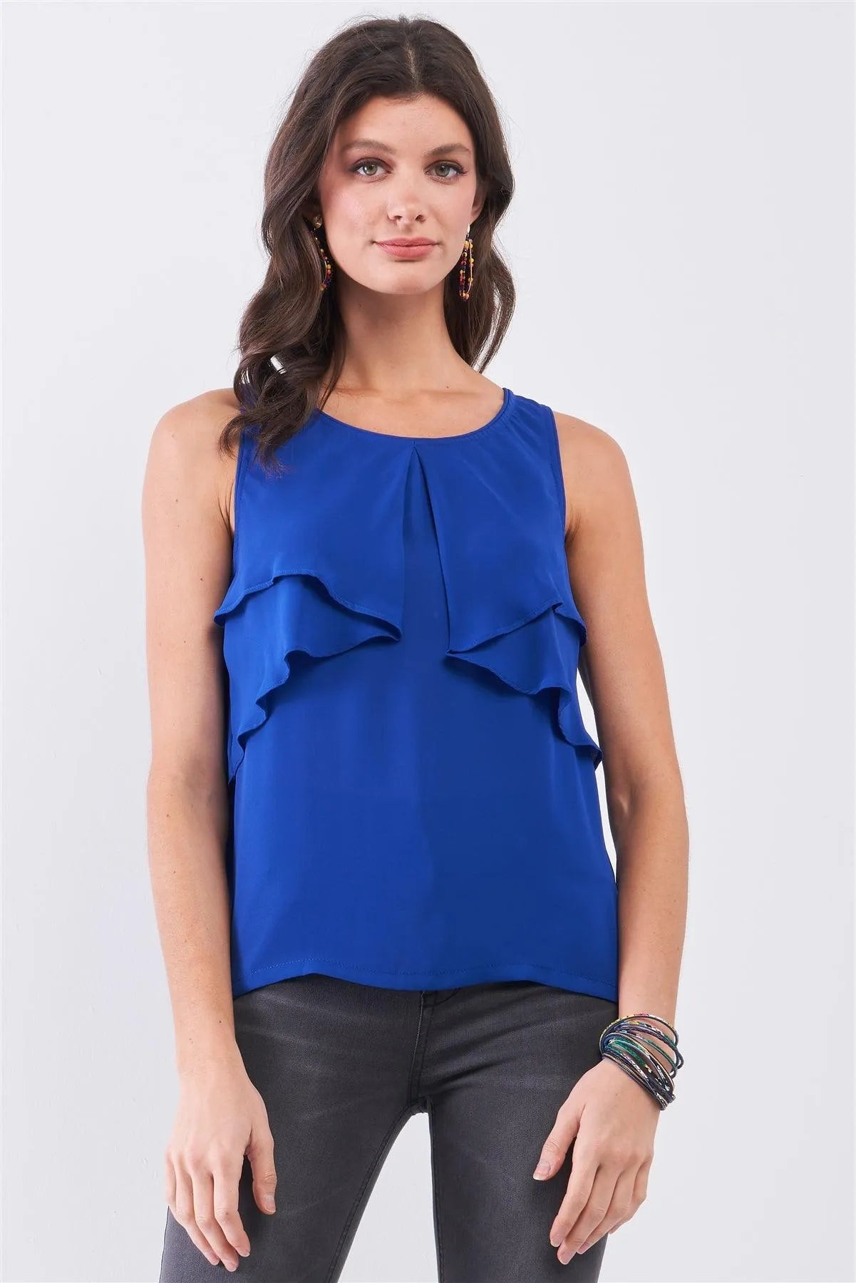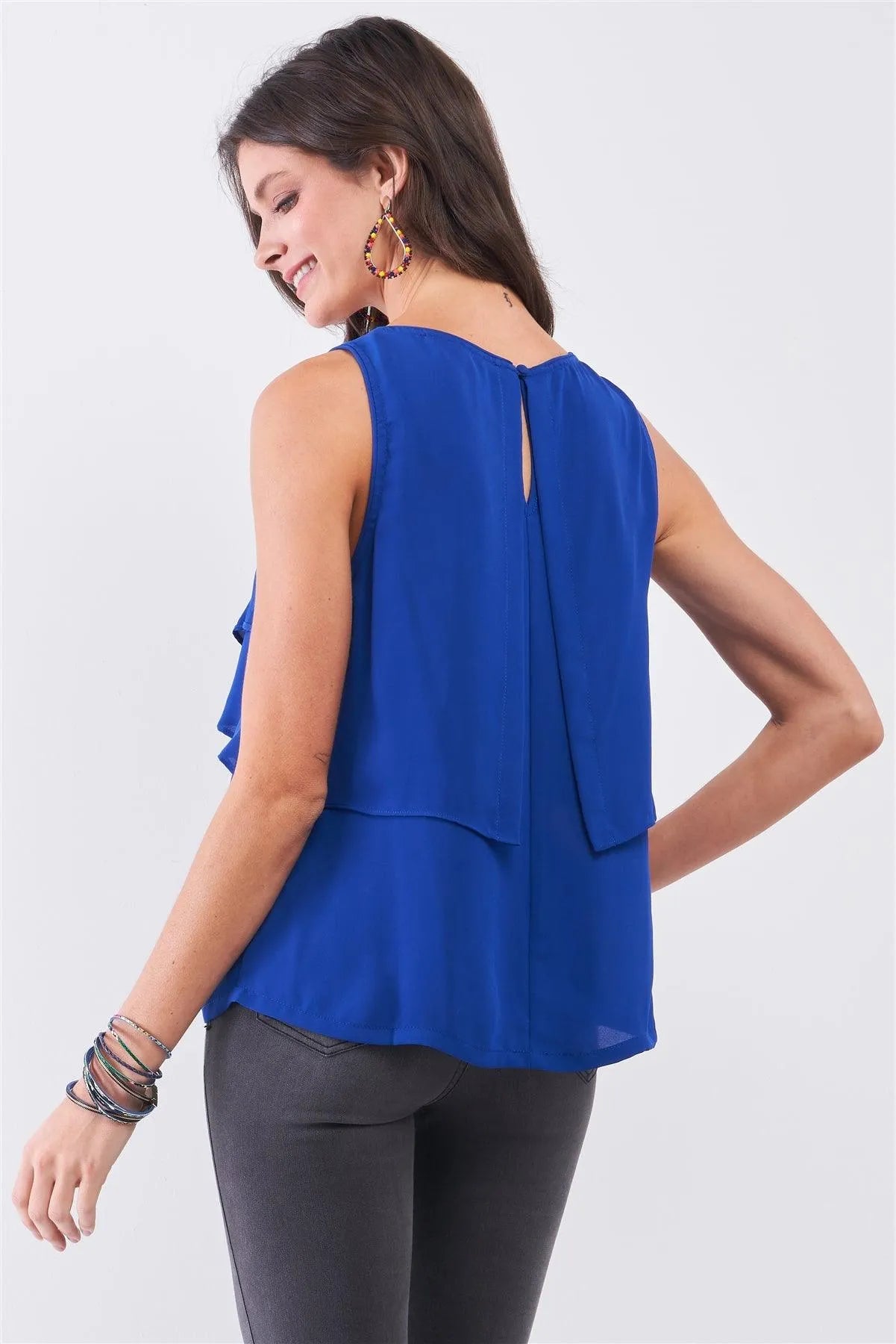 Royal Blue Sleeveless Round Neck Layered Babydoll Top /1-2-2-1