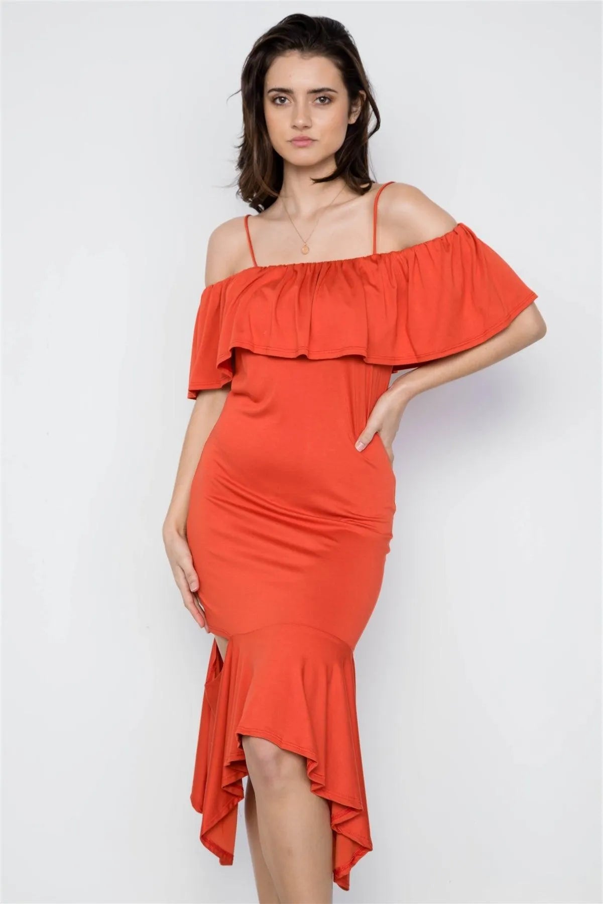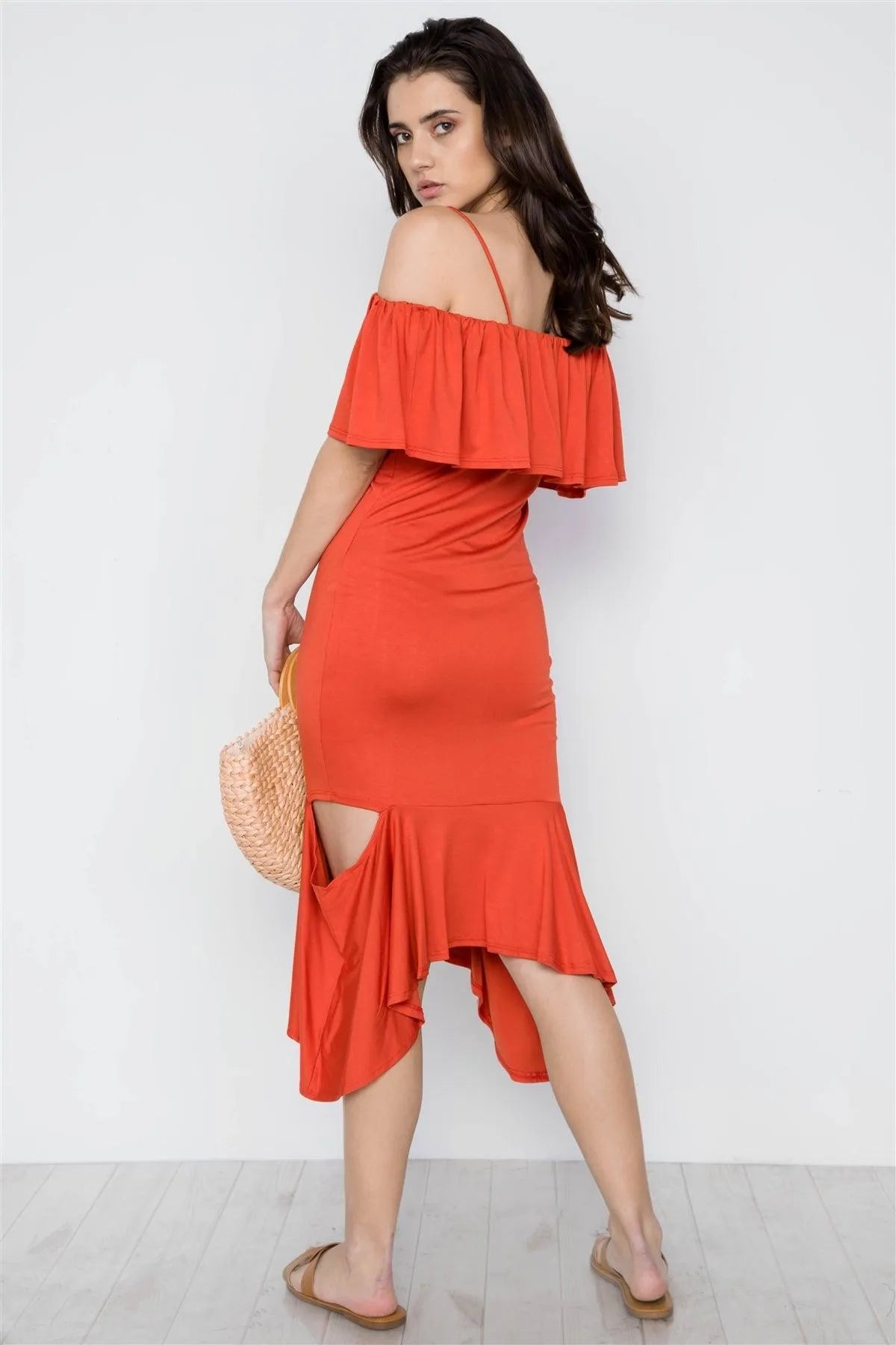 Rust Cami Flounce Cut Out Dress / 2-2-2