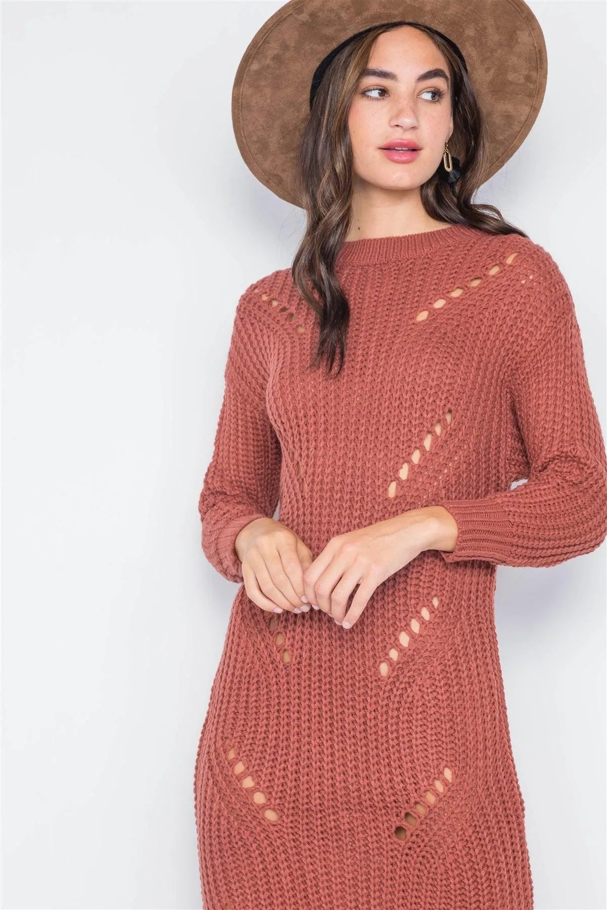 Rust Chunky Knit Long Sleeve Sweater Dress / 3-3
