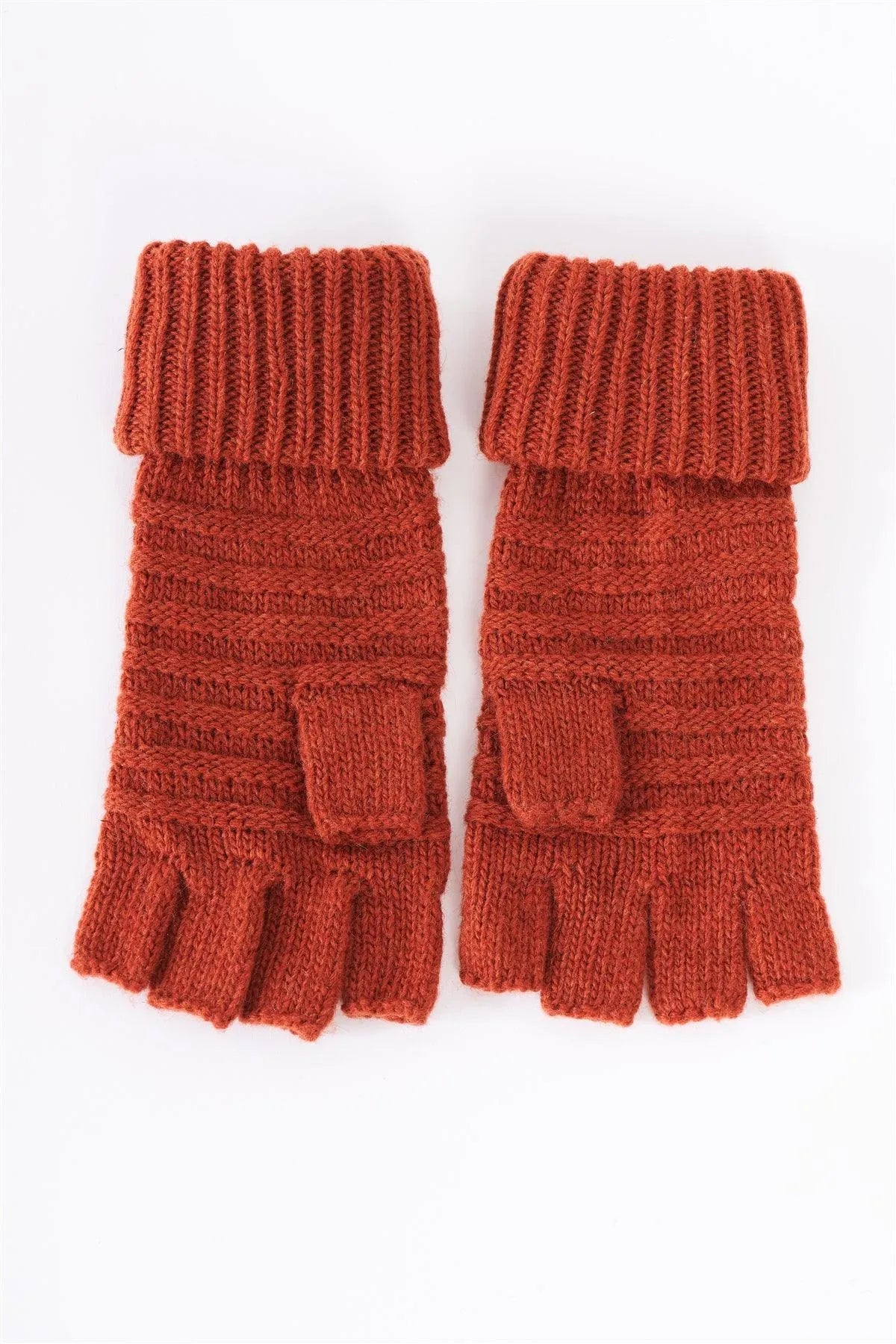 Rust Fingerless Button Detail Knit Winter Gloves /3 Pieces