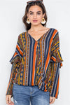 Rust Multi V-Neck Stripe Geo Print Long Sleeve Top /2-2-2
