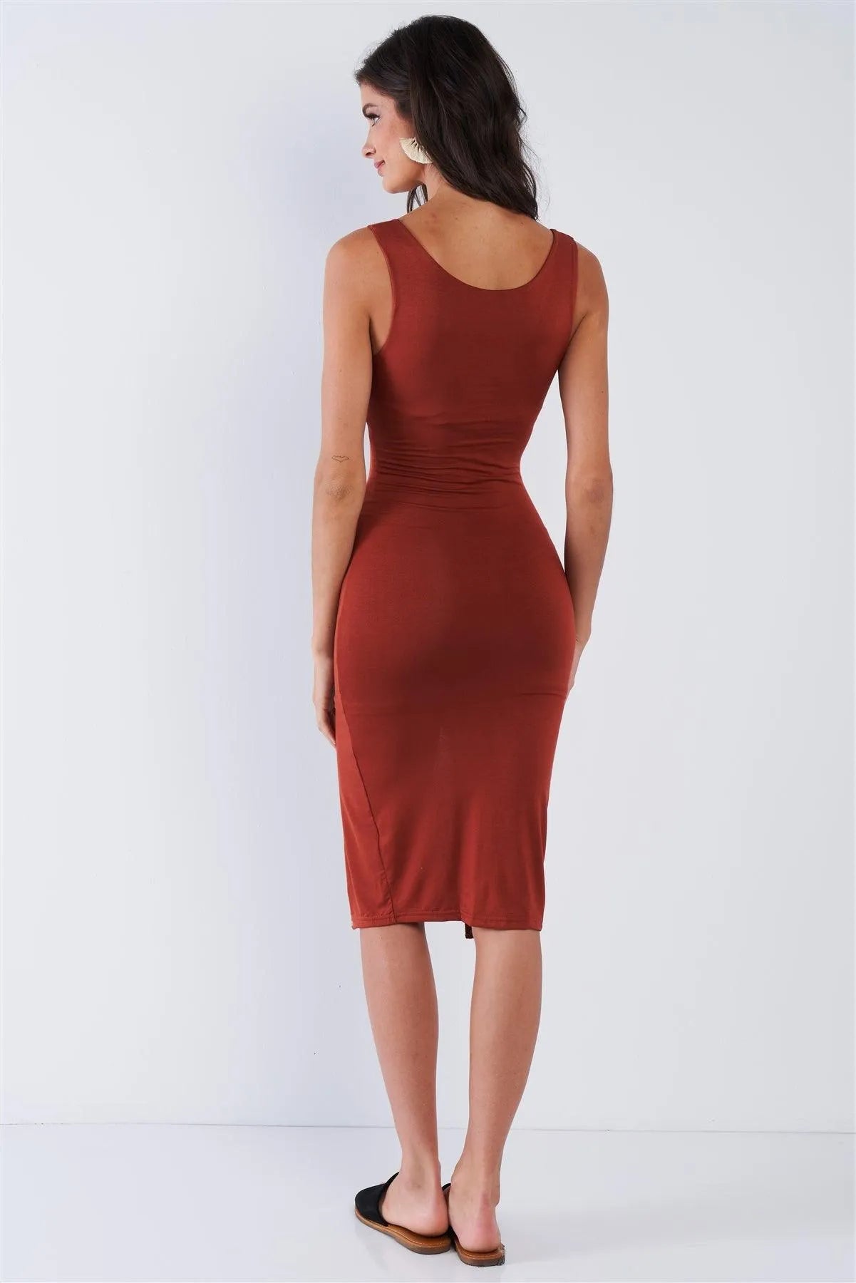 Rust Snap Up Button Sleeveless Scoop Neck Body-Con Midi Dress /2-2-2