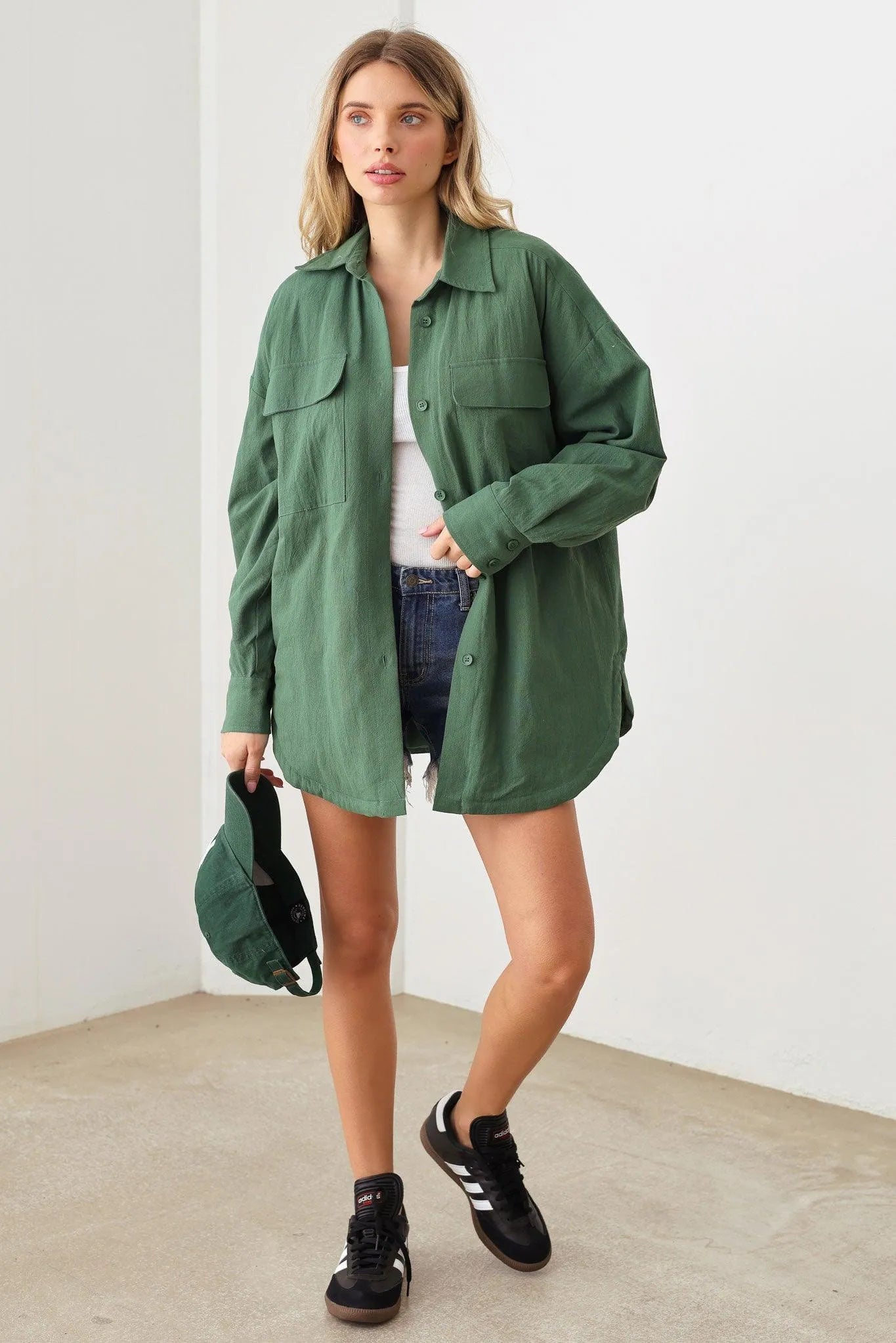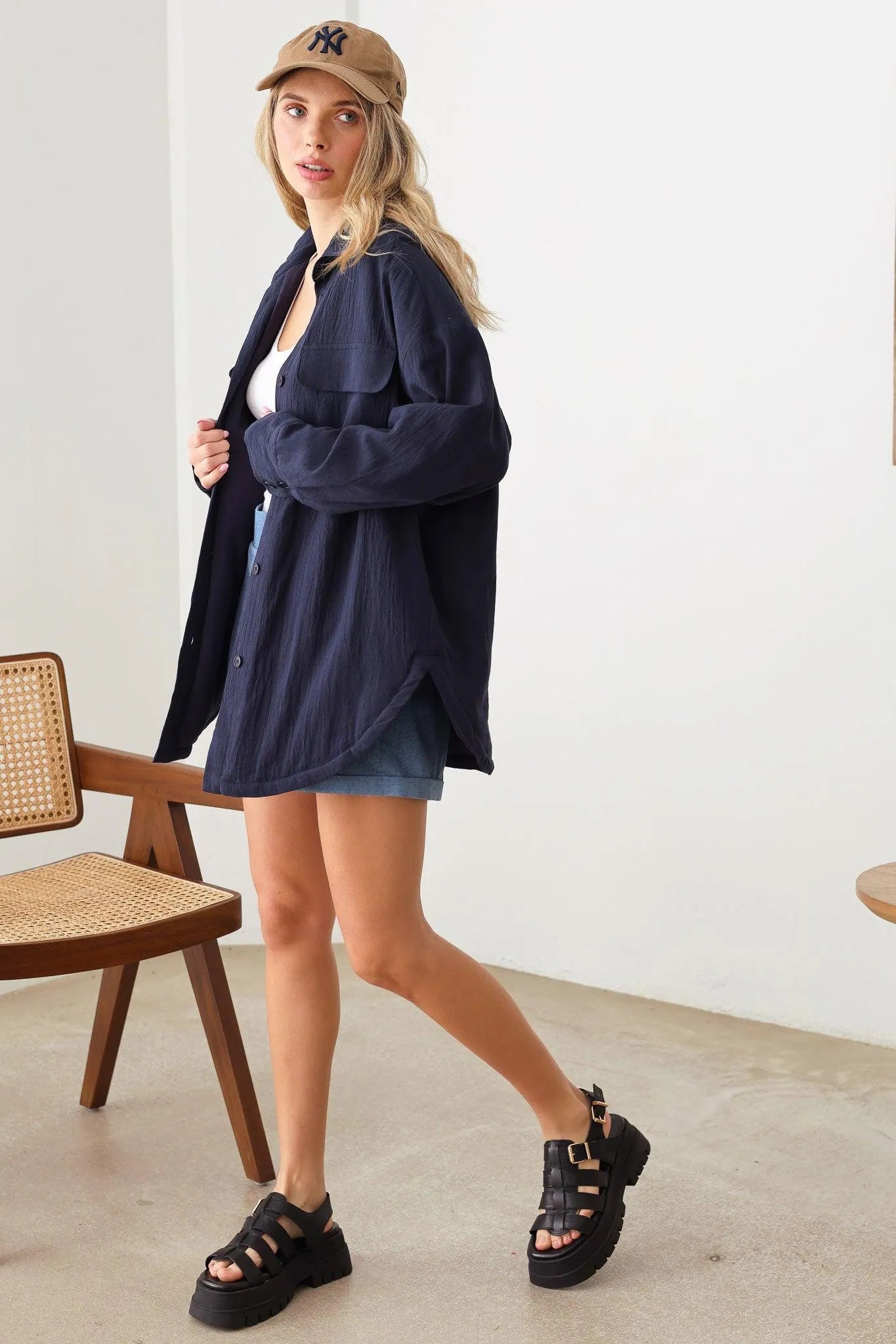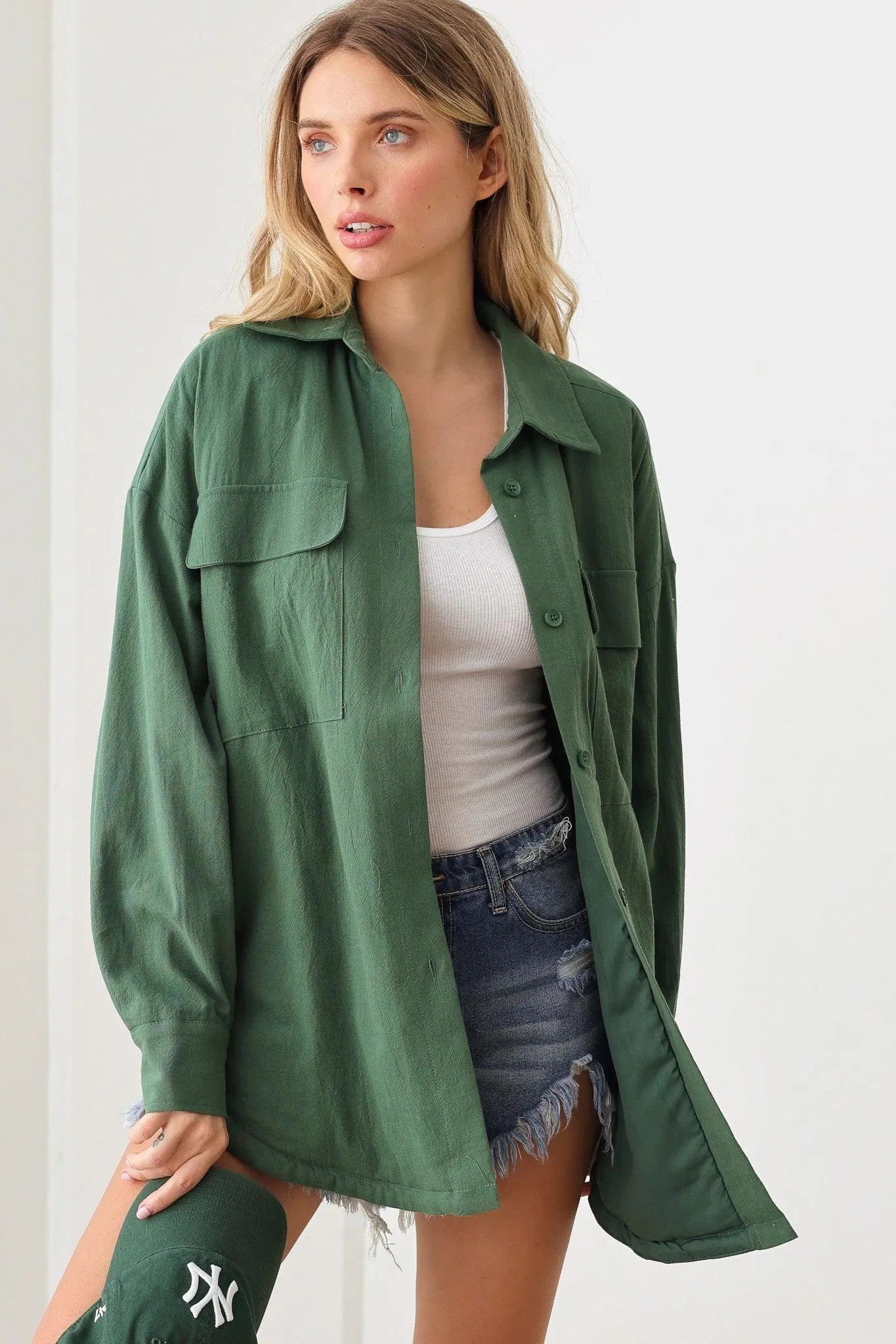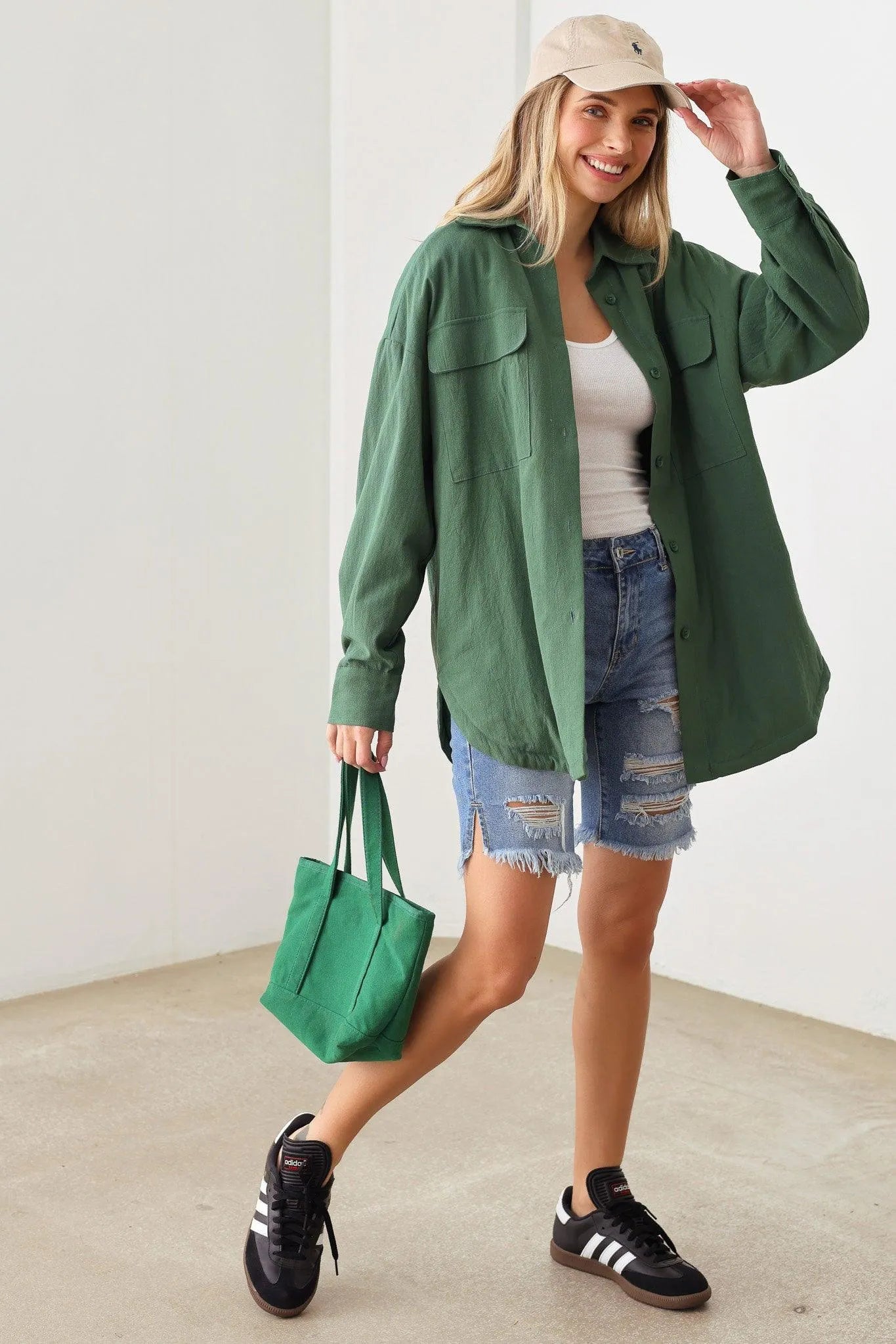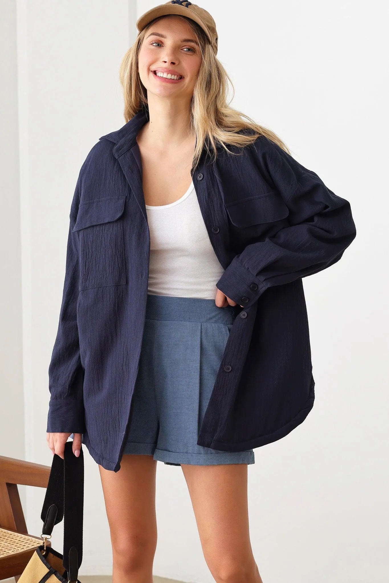 Oversize Wrinkled Two Front Pocket Button Down Shacket Jacket