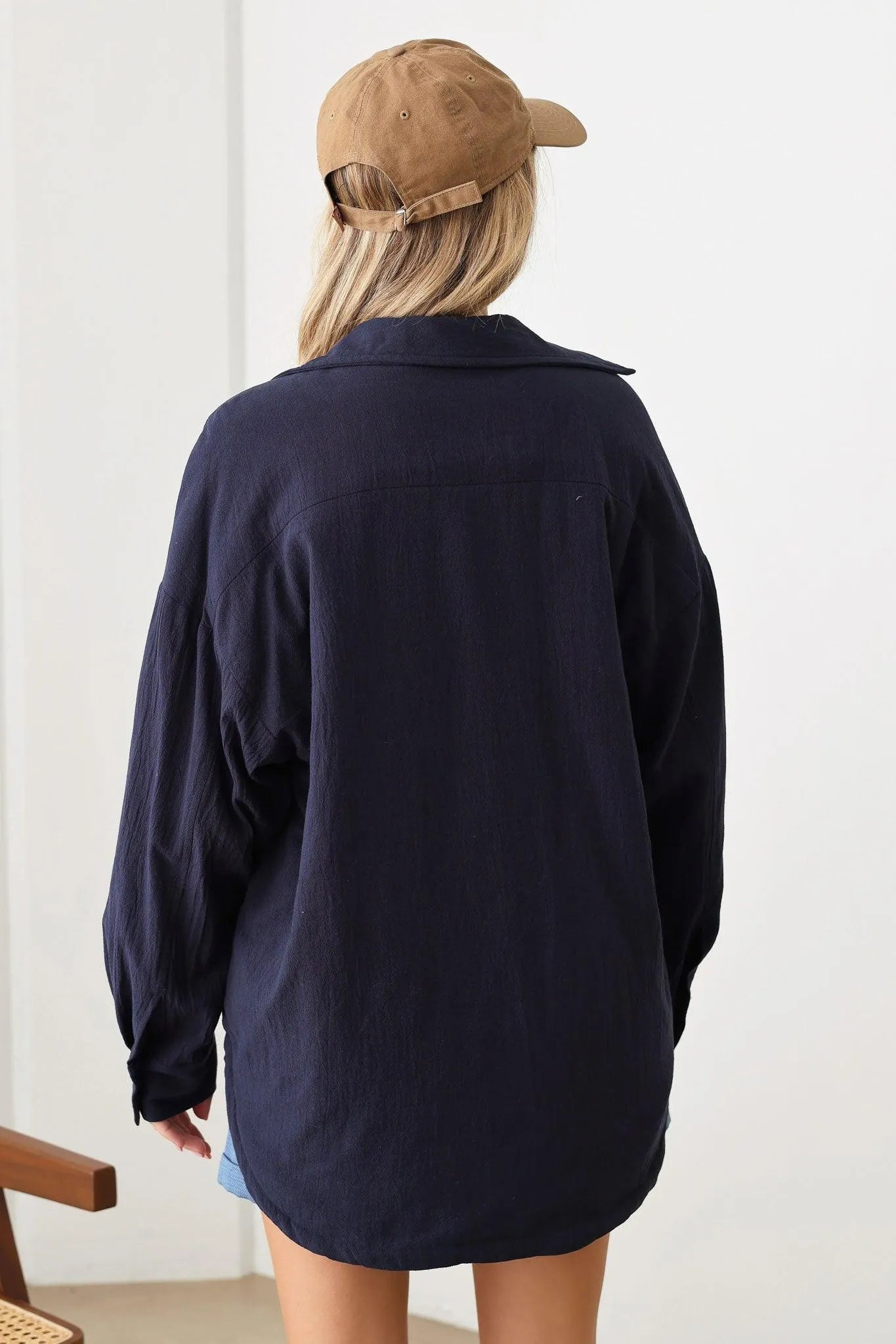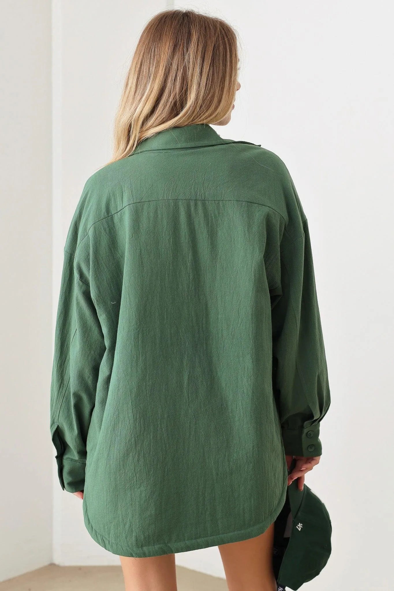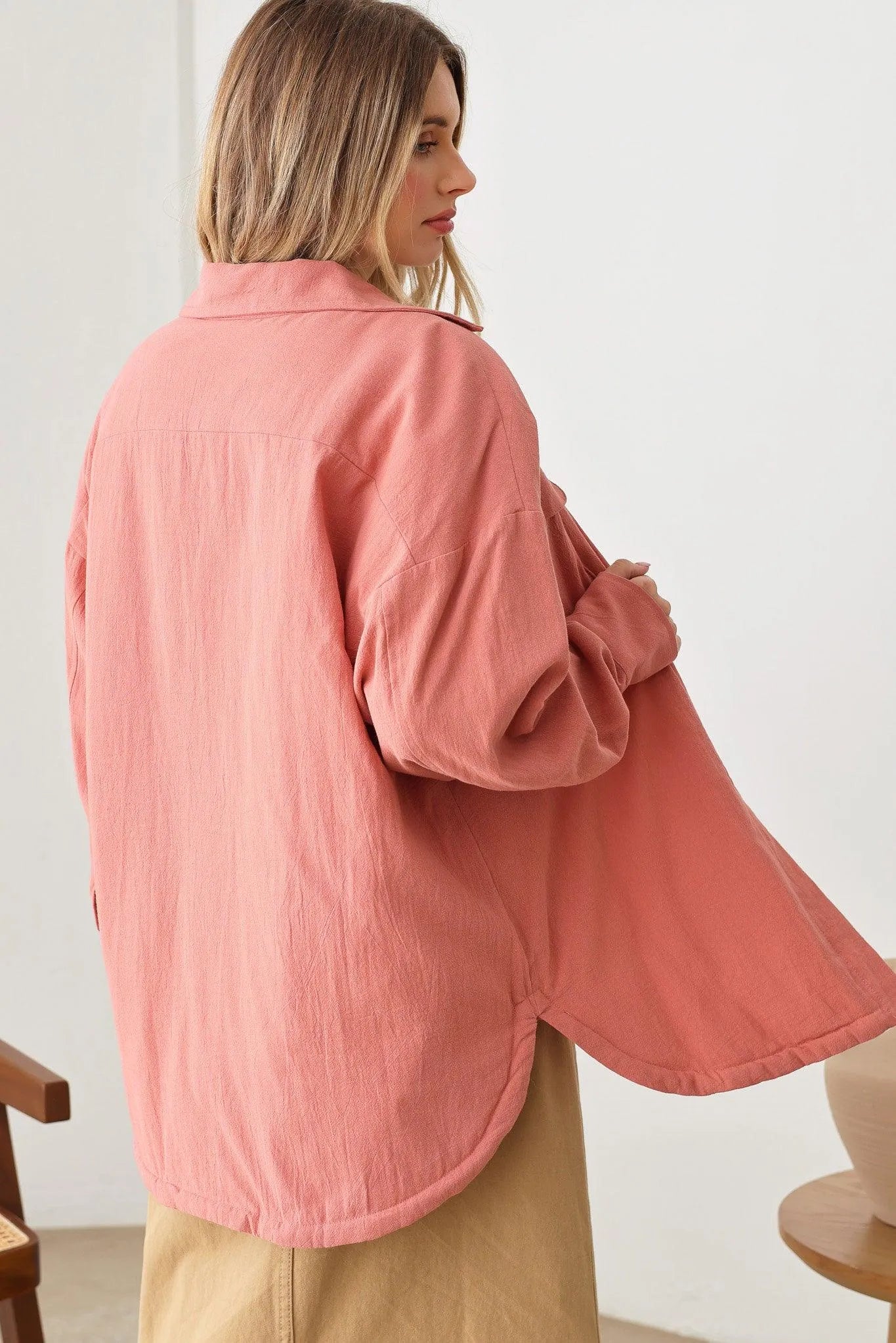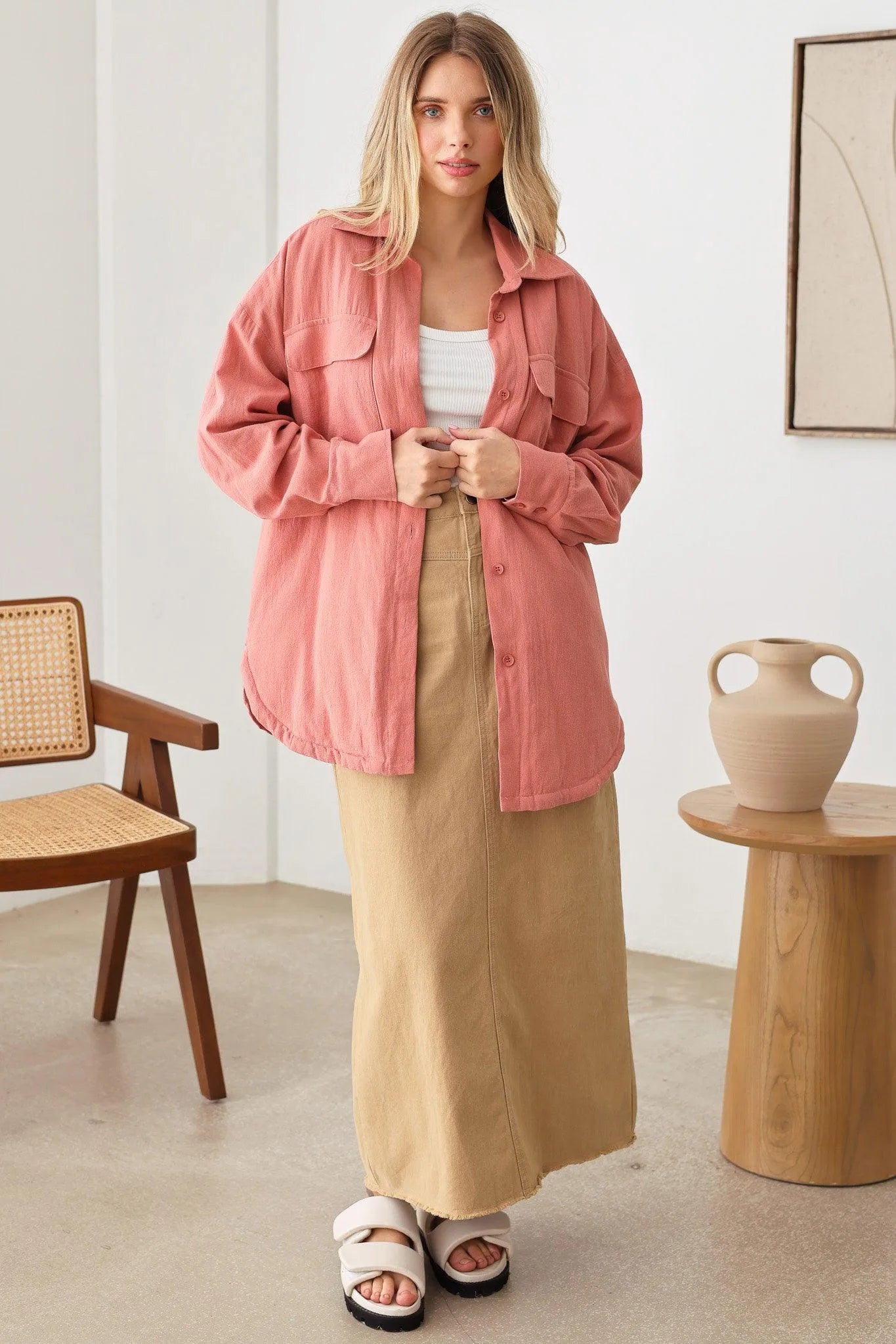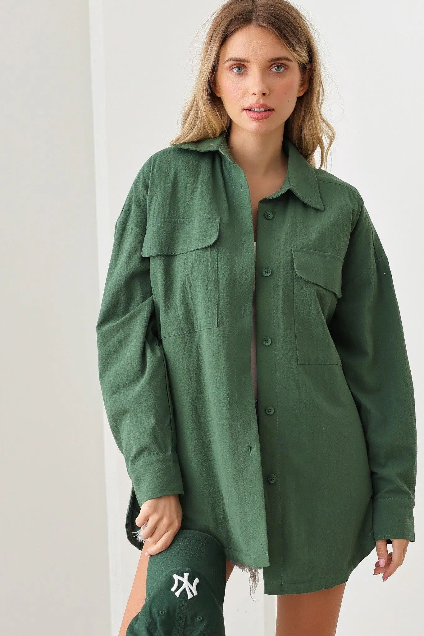 Oversize Wrinkled Two Front Pocket Button Down Shacket Jacket