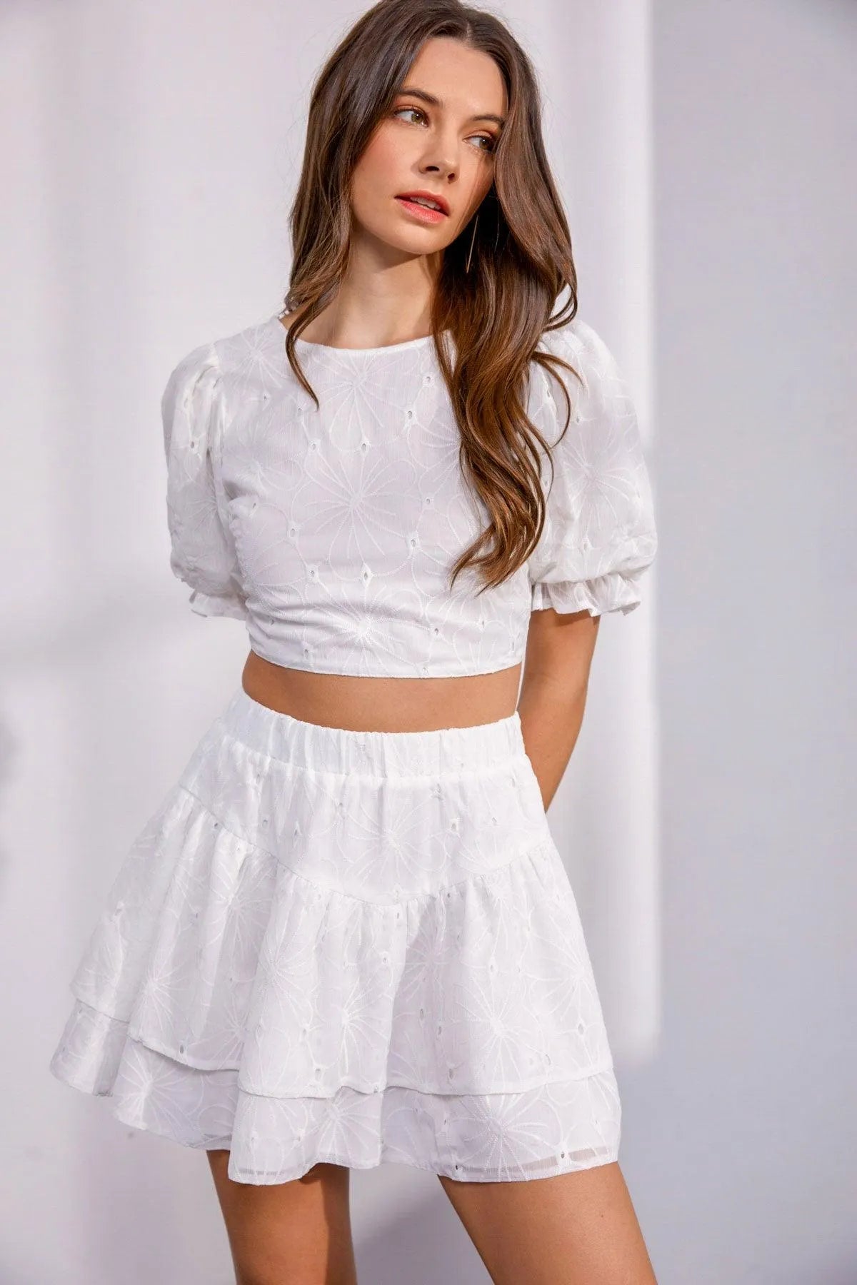 Smocked Long Sleeve Sheer Crop Top Trendy Boutique Fashion TopVendor:HYFVE