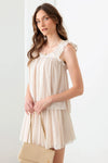 - Top: babydoll style, sheer pin dot patter, wide elastic strap, sleeveless, square neckline, elastic neckline