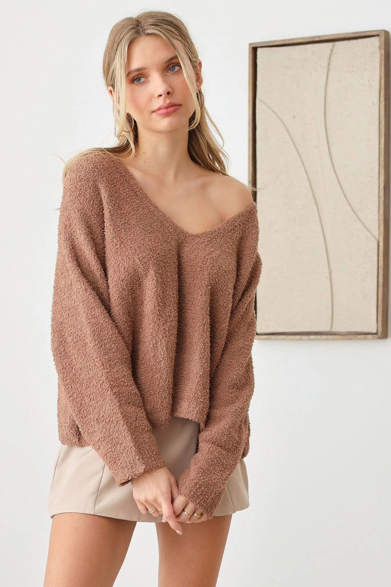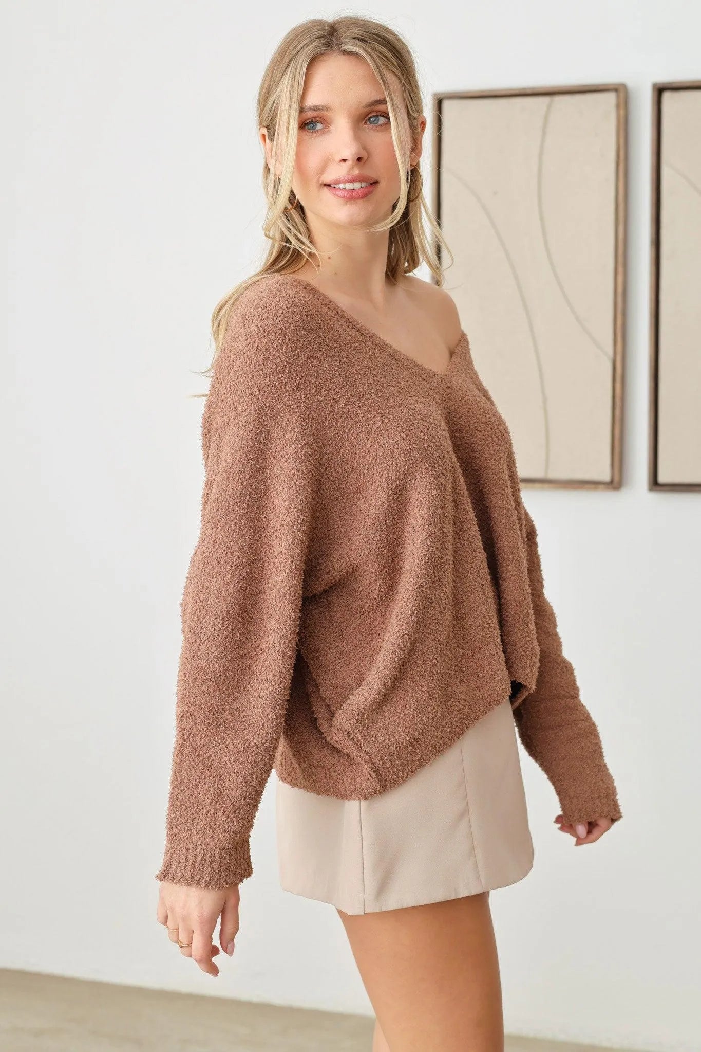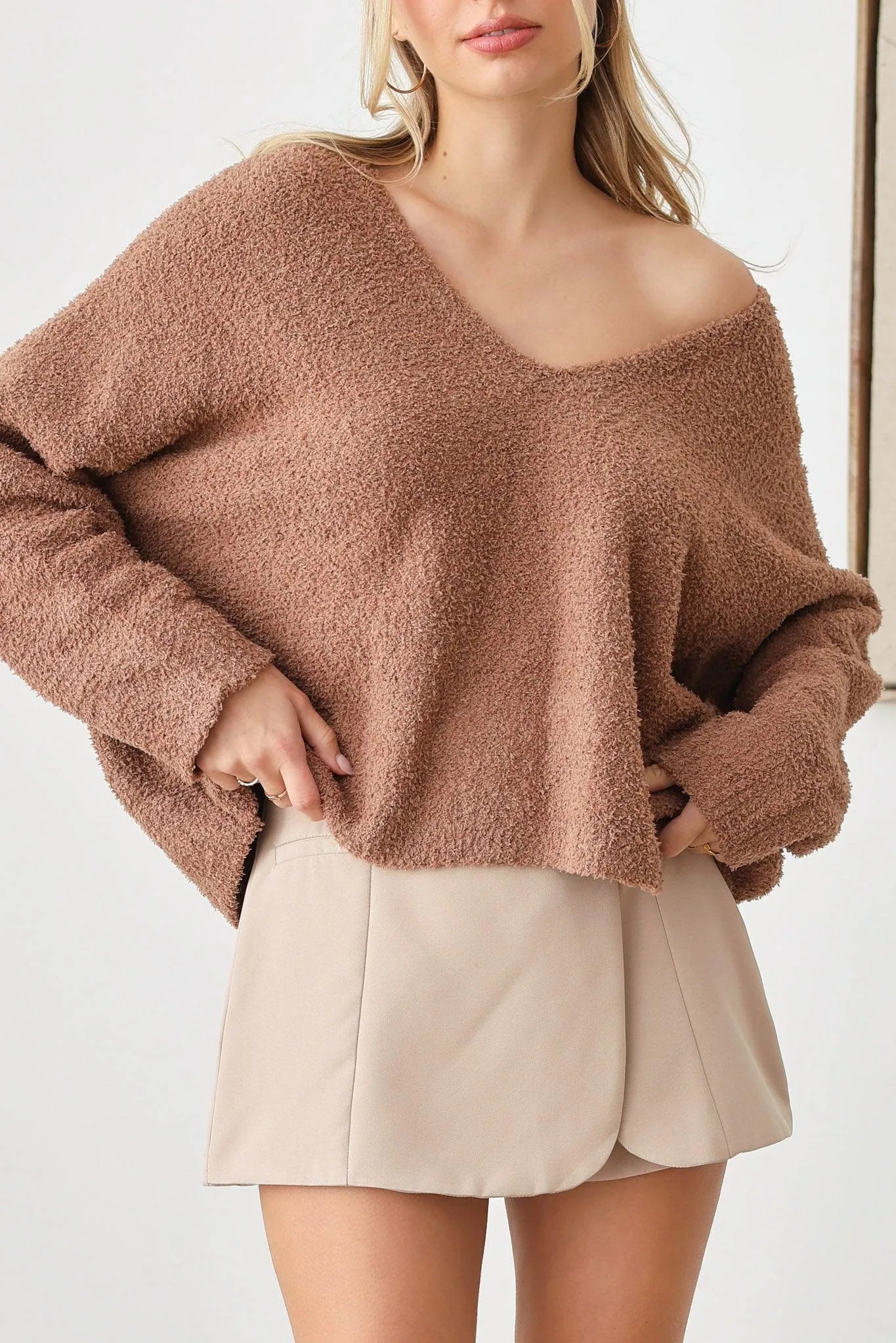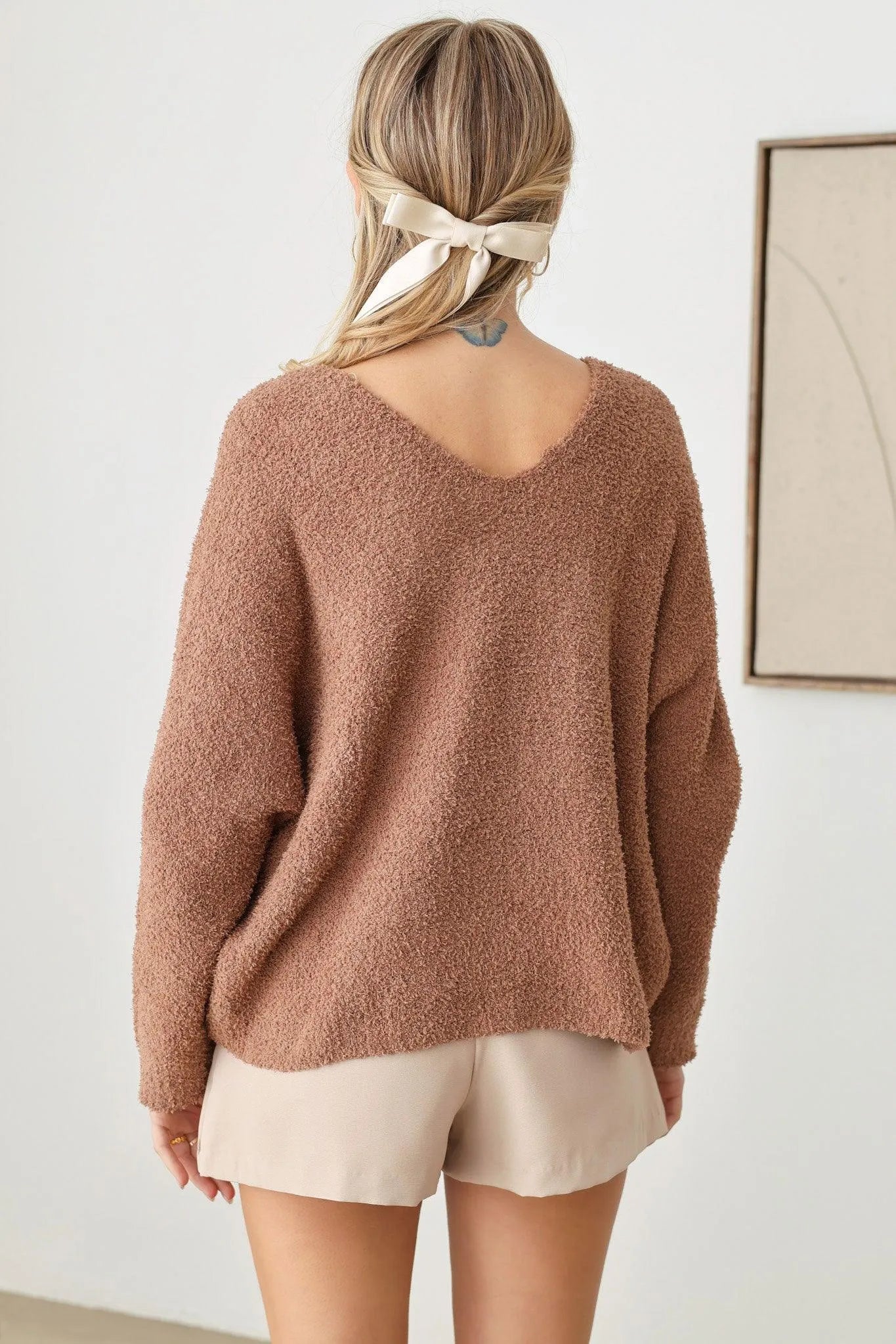 🖤 Get cozy in our V-Neck Oversized Knit Top! Made with high quality knit material, this top is perfect for lounging around or running errands. The v-neck design adds a touch of femininity while the oversized fit allows for maximum comfort. Upgrade your wardrobe with this trendy and versatile top.