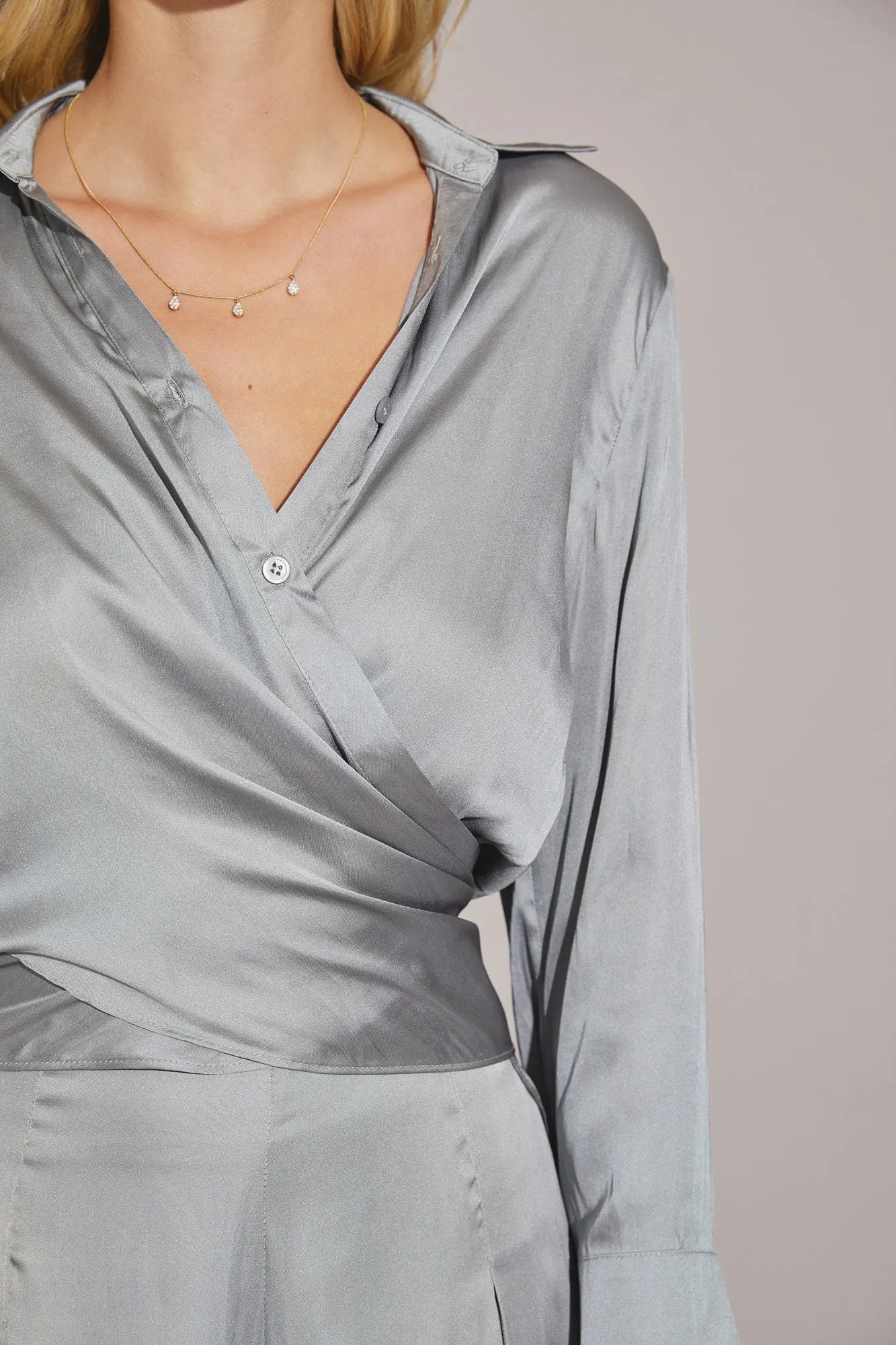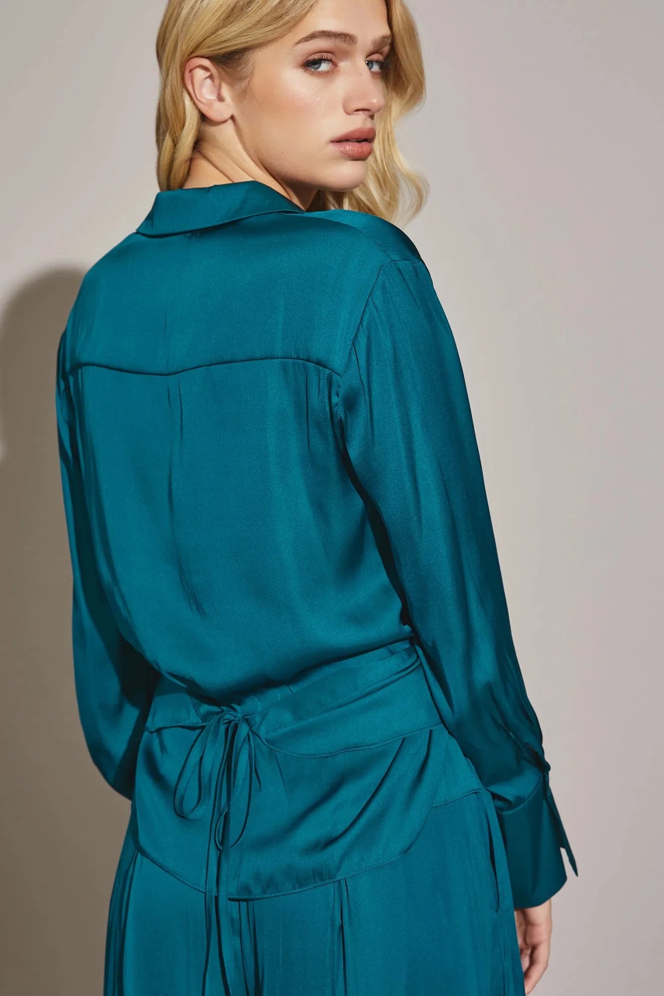 Effortlessly elevate your wardrobe with our Satin Cross Wrap Tie Back Shirt. Crafted from soft satin fabric, this shirt features a unique cross wrap design with a tie back, providing a flattering and stylish silhouette. Perfect for any occasion, this shirt offers both comfort and sophistication.