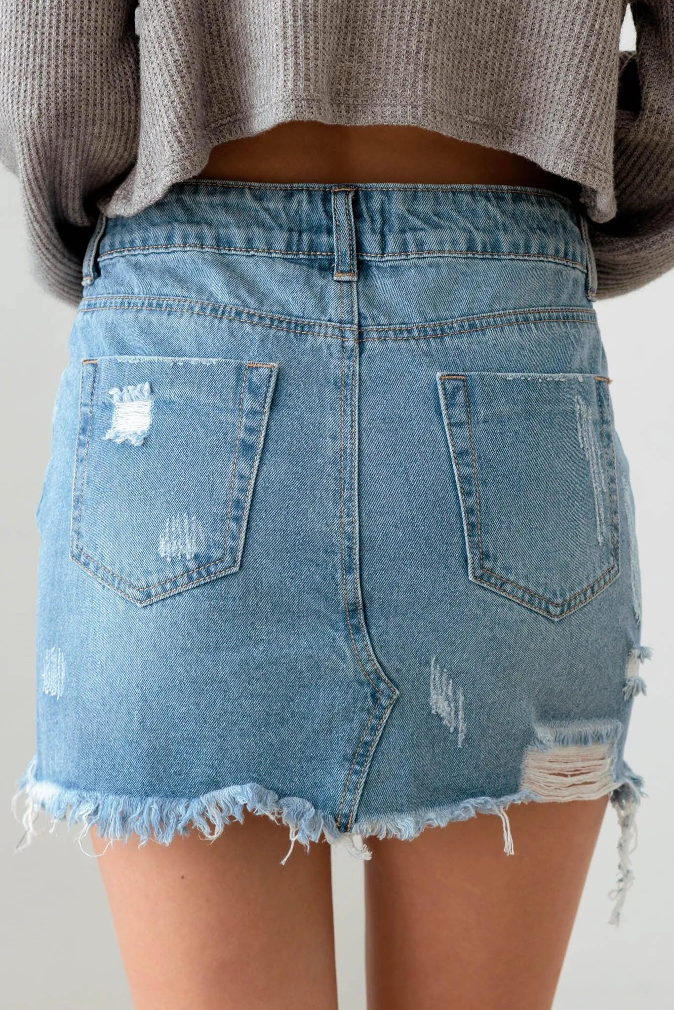 Blue Wash Distressed Ripped Denim Mini Skirt