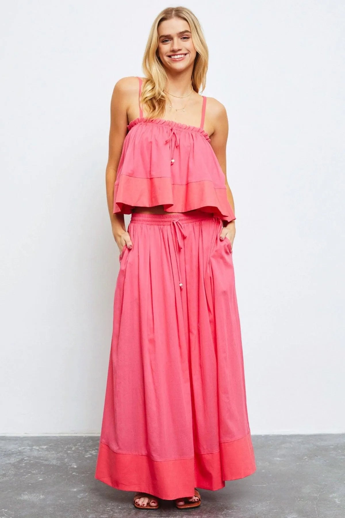 🖤 Item Feature: women summer skirt, maxi length, front tie, elastic waist ,two tone colors, not see through, boho style, flowing fabric, and a thick hemline, effortlessly stylish and chic!