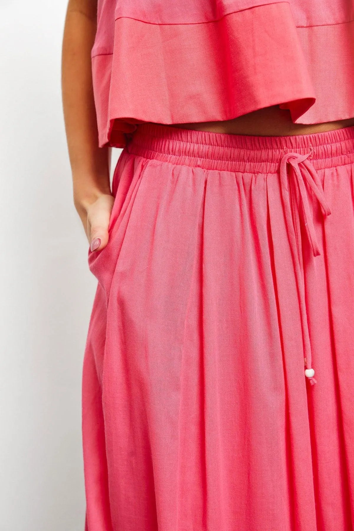 Utility Pockets Front Slit Drawstring Waist Midi SkirtVendor:Mustard Seed