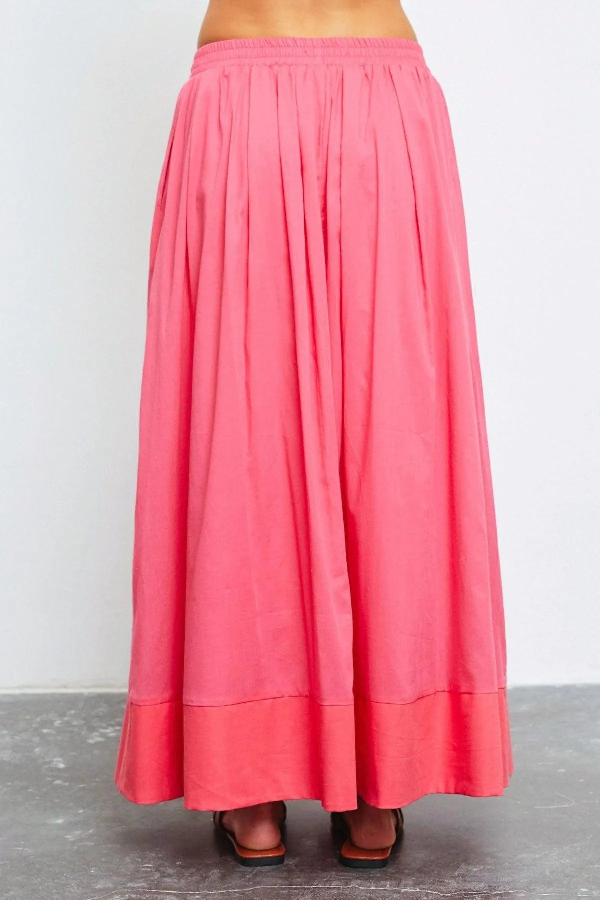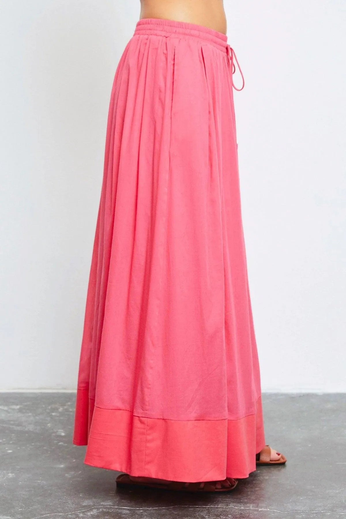 Western Boho Colorblock Front Tie Elastic Waist Maxi Skirt