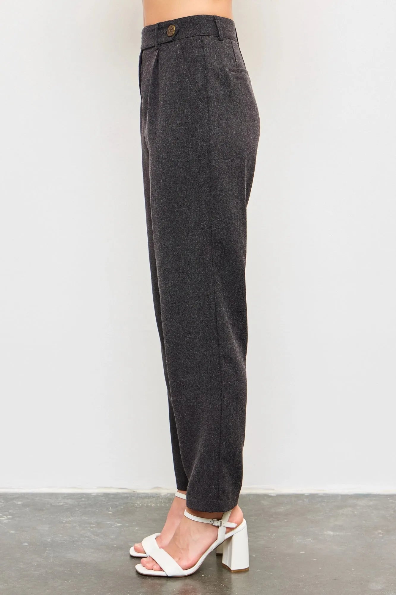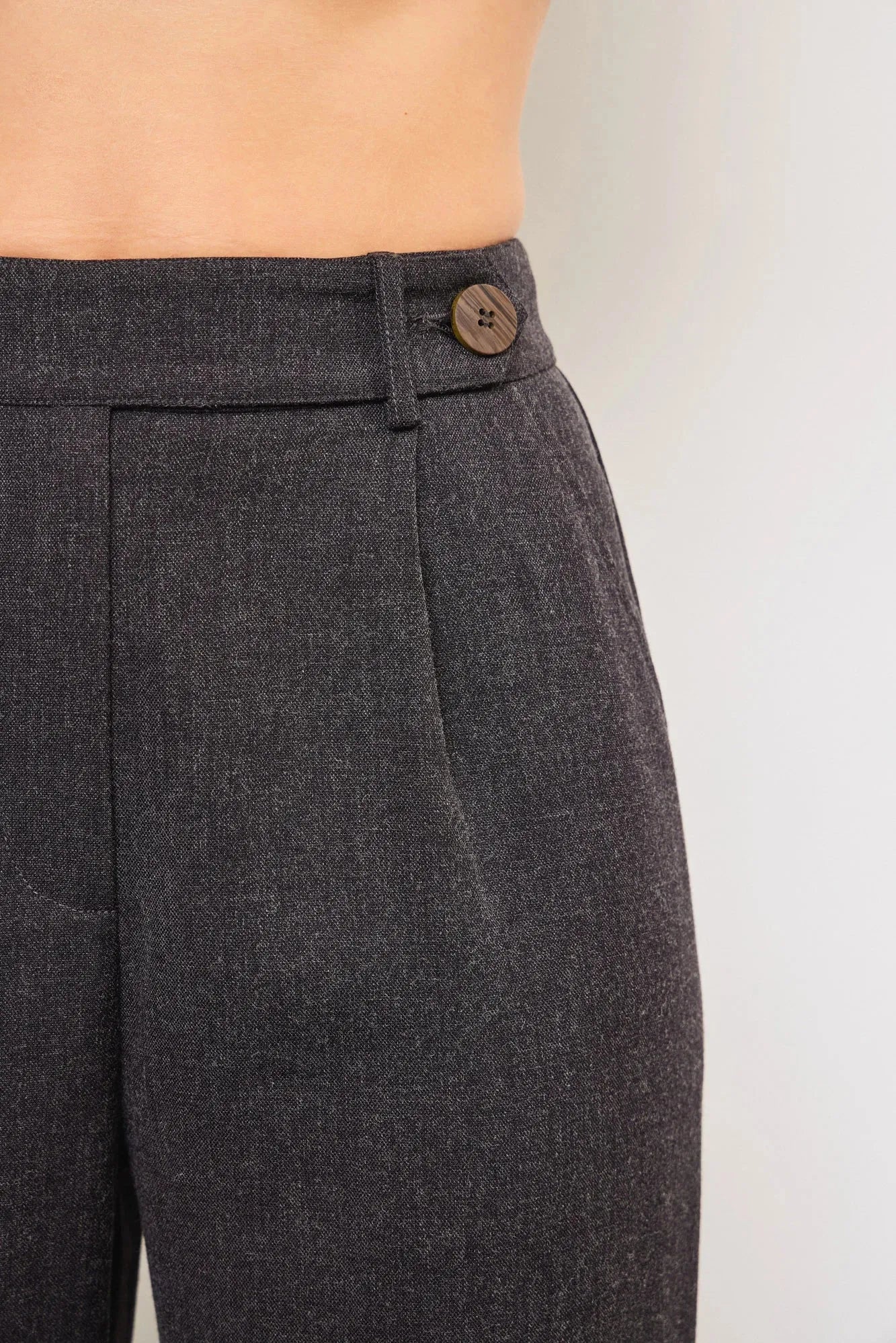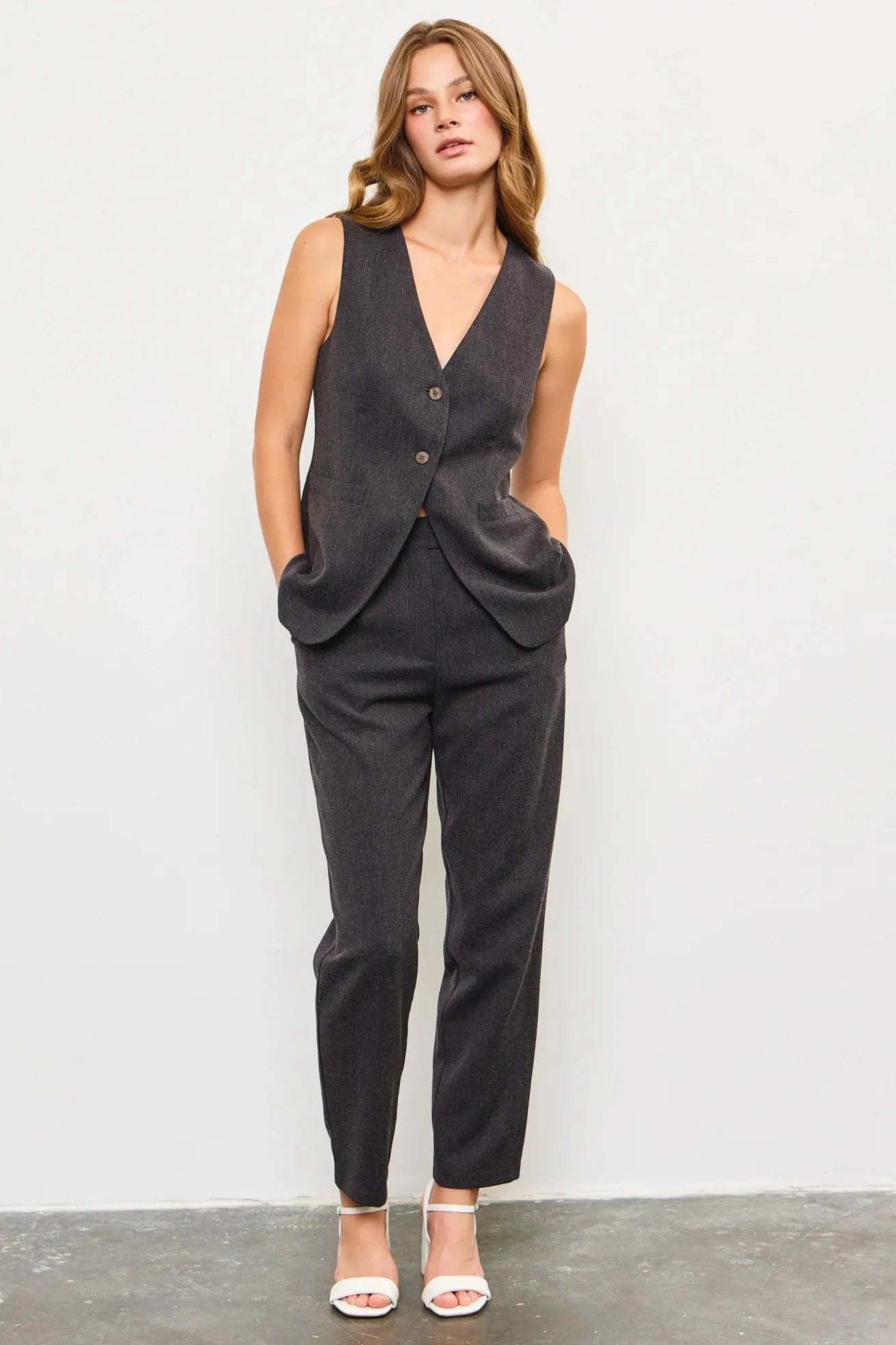 🖤 Features: High-waisted design, cami, charcoal color, two side pockets, side button detail, woven, lightweight and breathable material