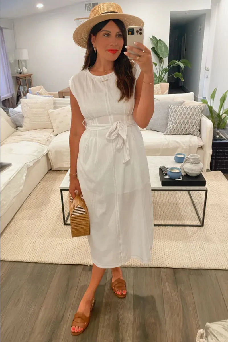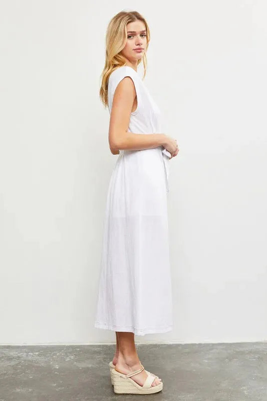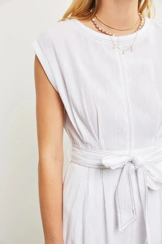 Stitch Self Tie Back Zipper Sleeveless Maxi Dress