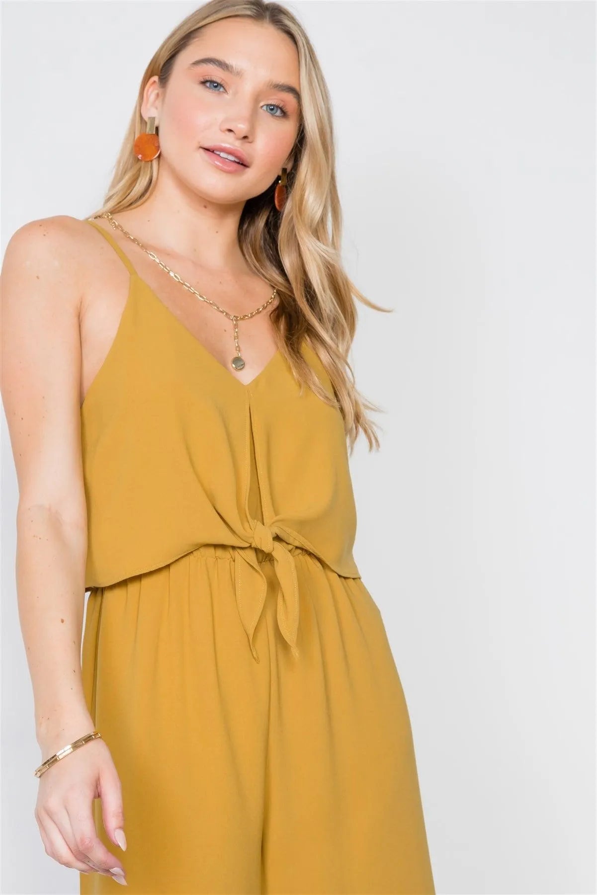 Saffron Cami Front Tie Wide Leg Solid Jumpsuit /3-2-1