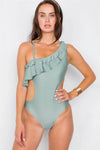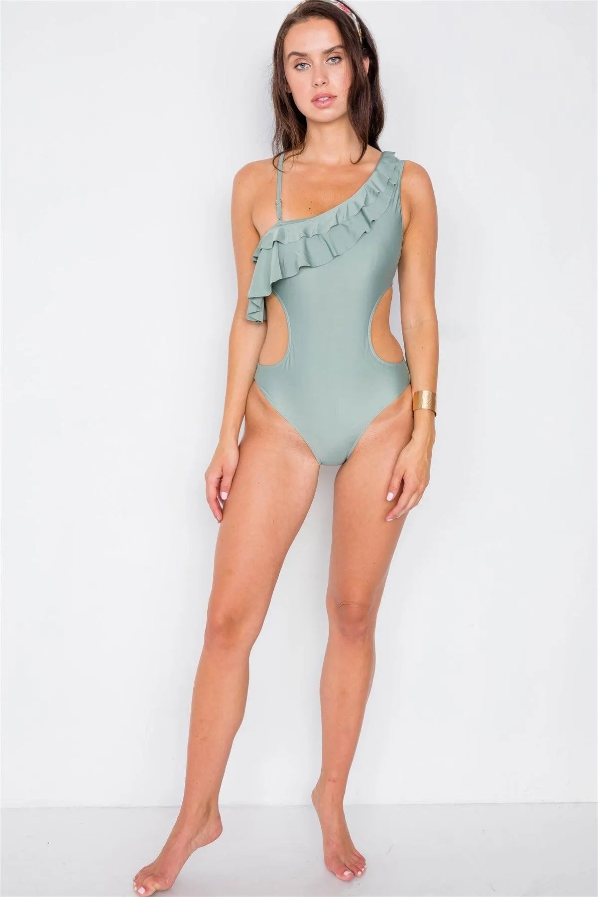 Sage Flounce Asymmetrical Cut-Out One Piece Bikini /1-1-1-1