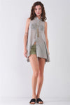 🖤Item Features: Sage green, solid, low-rise, slightly ripped trim, front zip-up and double button closures, two front & two back pockets, fitted, mini length, unlined, non-stretch, denim, casual, cute, spring/summer collection, all new denim