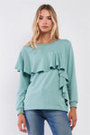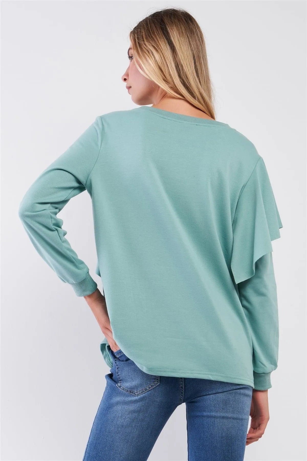 Sage Ruffled Crew Neck Long Sleeve Sweatshirt /2-2-2
