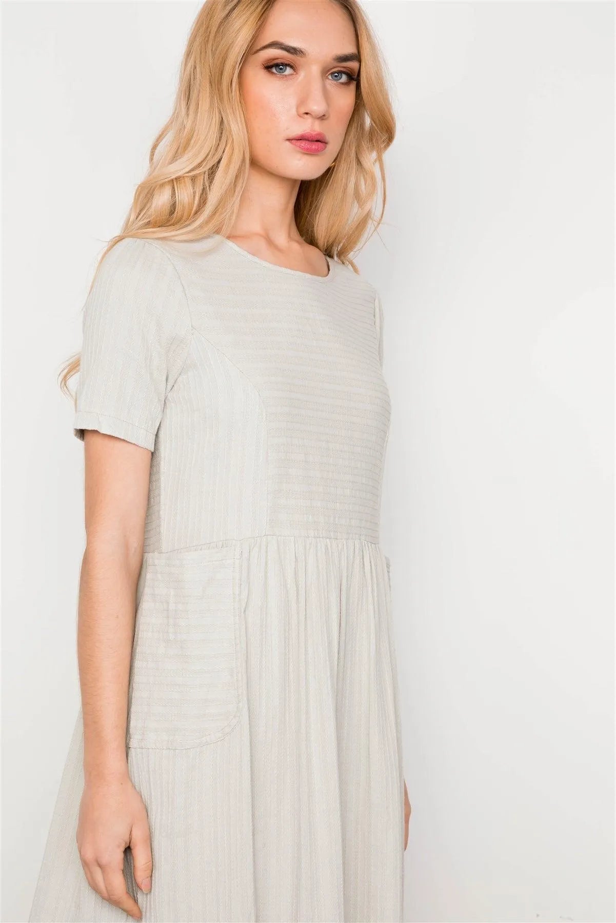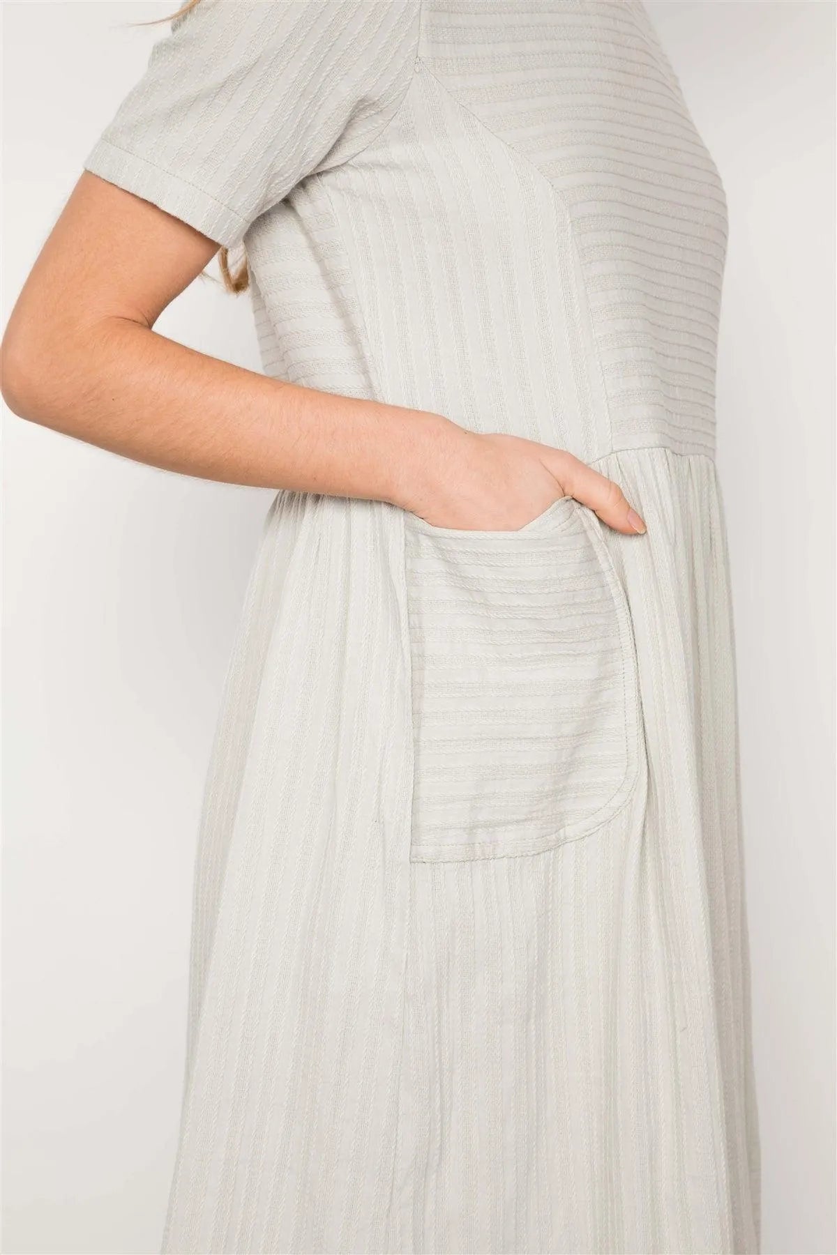 Sage Mauve Short Sleeve Round Neck Midi Dress / 2-2-2