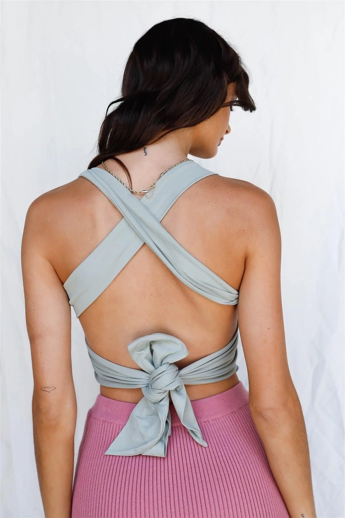 Sage Smocked Back Criss-Cross Self-Tie Strap Sleeveless Crop Top /3-2-1