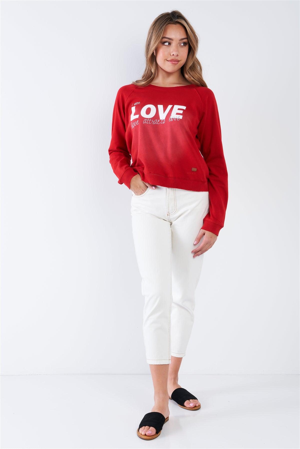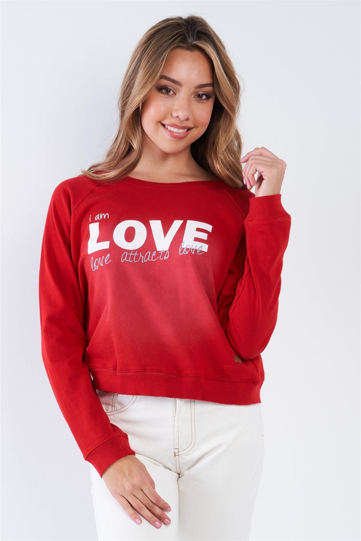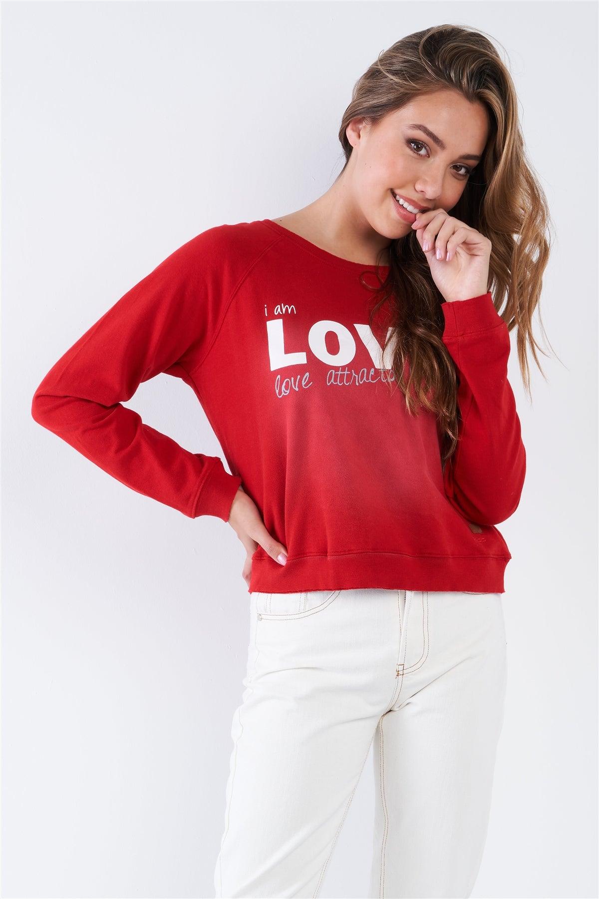 Samba Red "I Am Love, Love Attracts Love" Long Sleeve Crew Neck Top