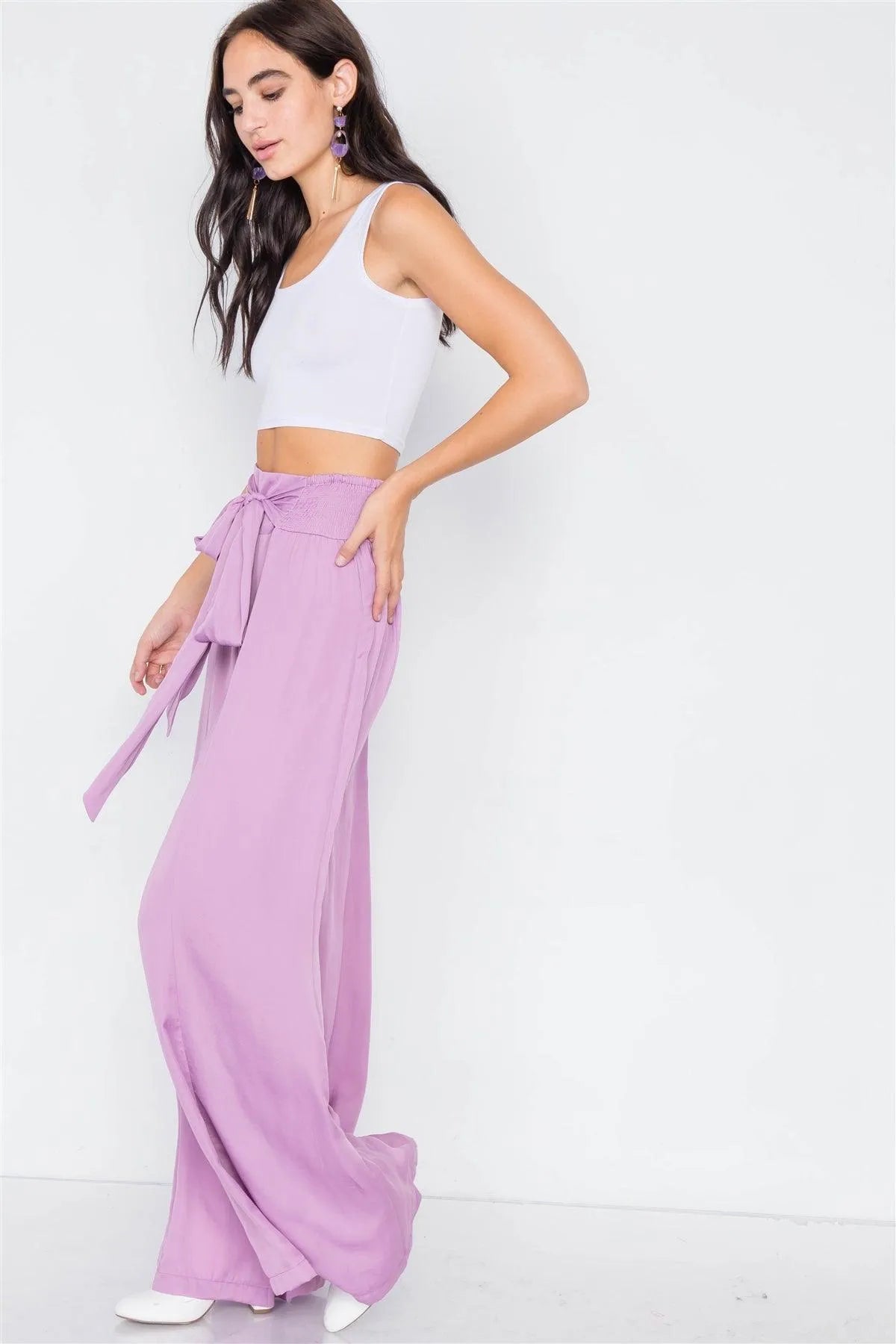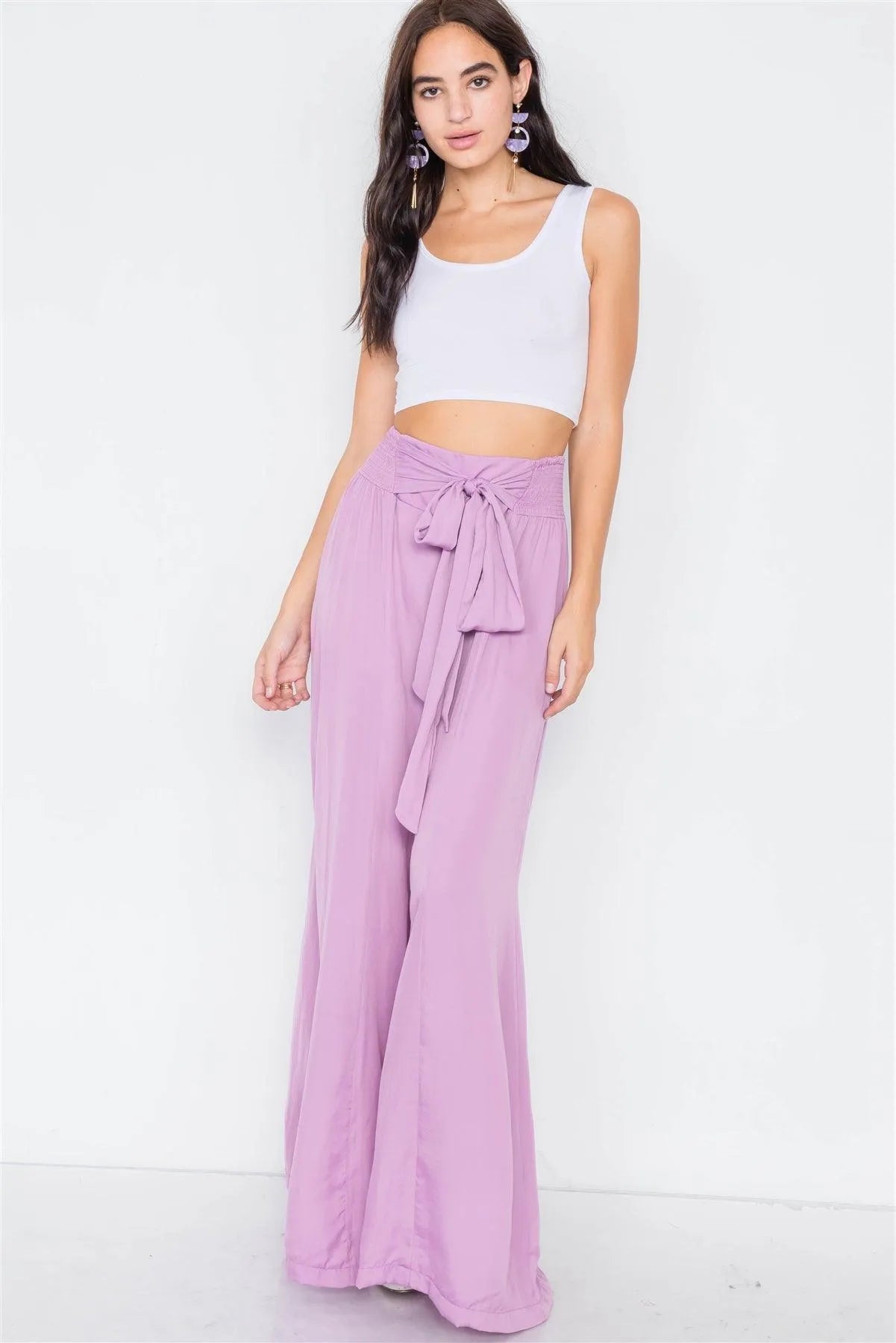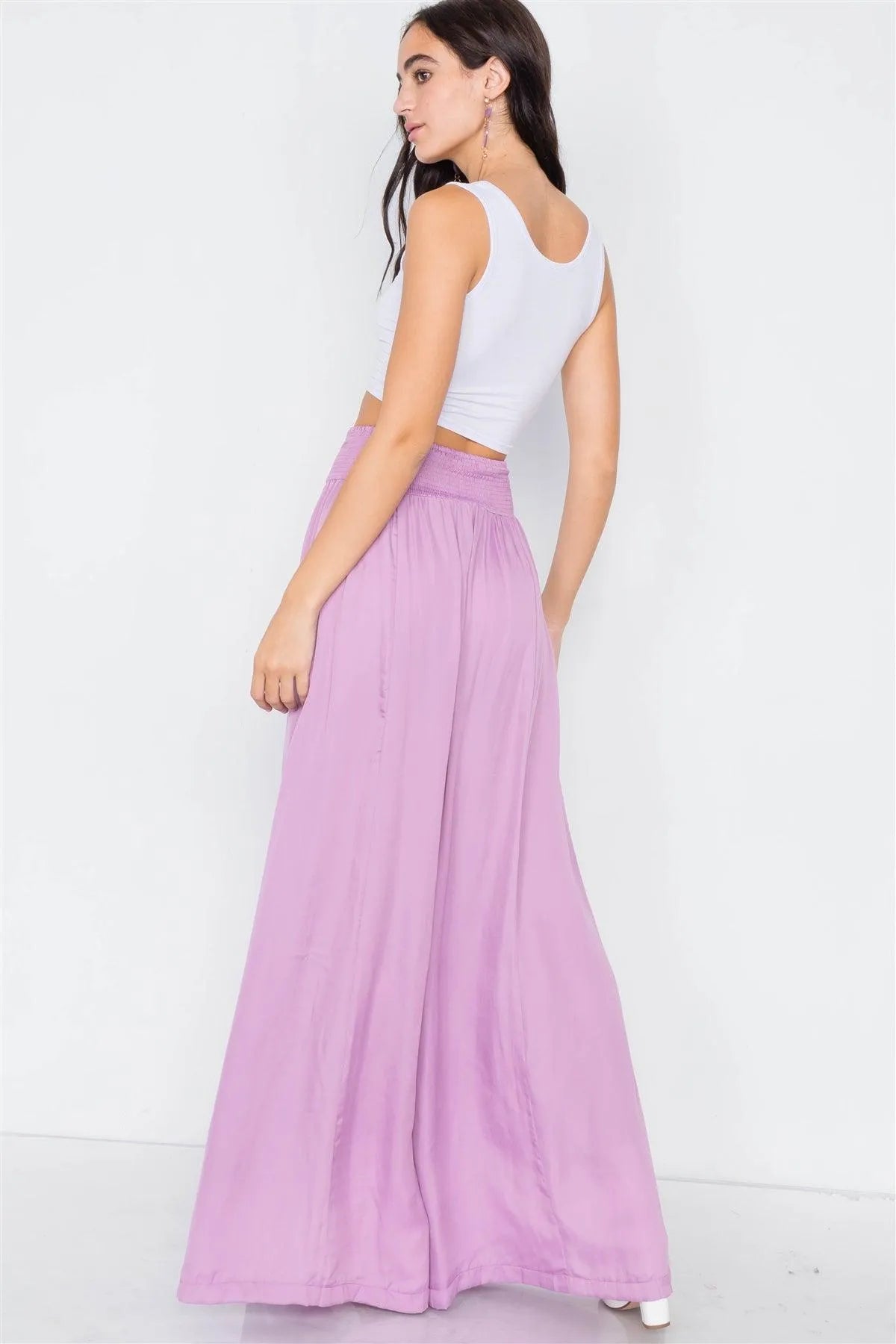 Satin Lilac Wide Flare Leg Hight-Waist Pants /3-2-1
