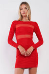 🖤Item Features: Red, solid color, mesh inserts, round neckline, long sleeves, V-back with a zipper closure, cut-out back, slim fit, bodycon dress, mini length, semi-lined, stretchy, semi-sheer, night out, cocktail party & night club outfit, sexy, fall/winter collection