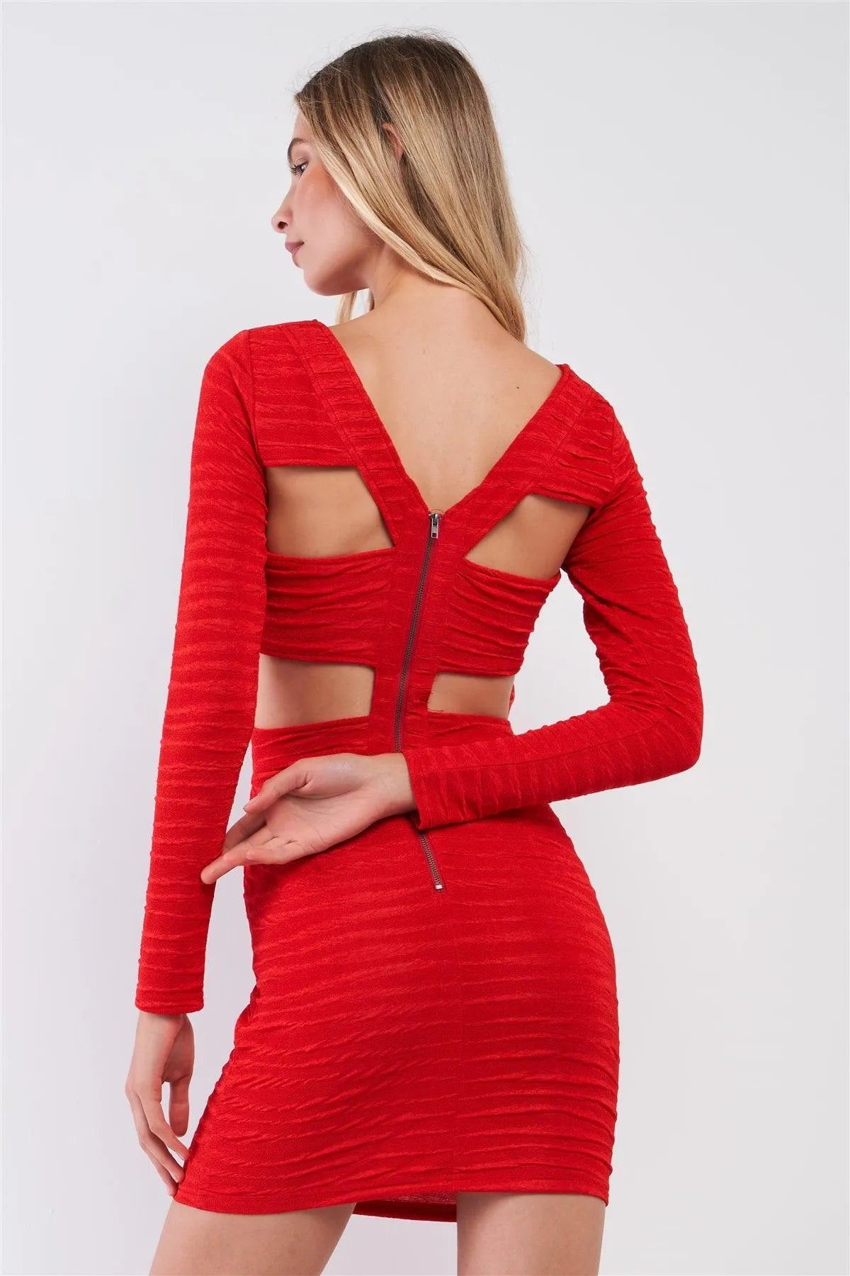 Sexy Red Mesh Inserts Cut-Out Back Bodycon Mini Dress /3-2-2