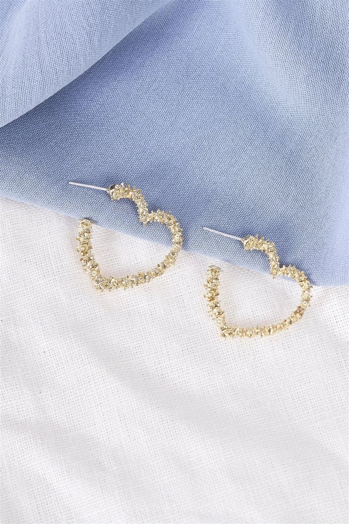 Shaved Gold Crust Heart Shaped Stud Earrings /3 Pieces