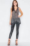Sheer Black Lace Trim Cut-Out Razor Back Top /3-2-1