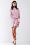 Shell Pink Ribbed Self-Tie Detail Long Sleeve Mock Neck Loose Mini Dress /2-3-1