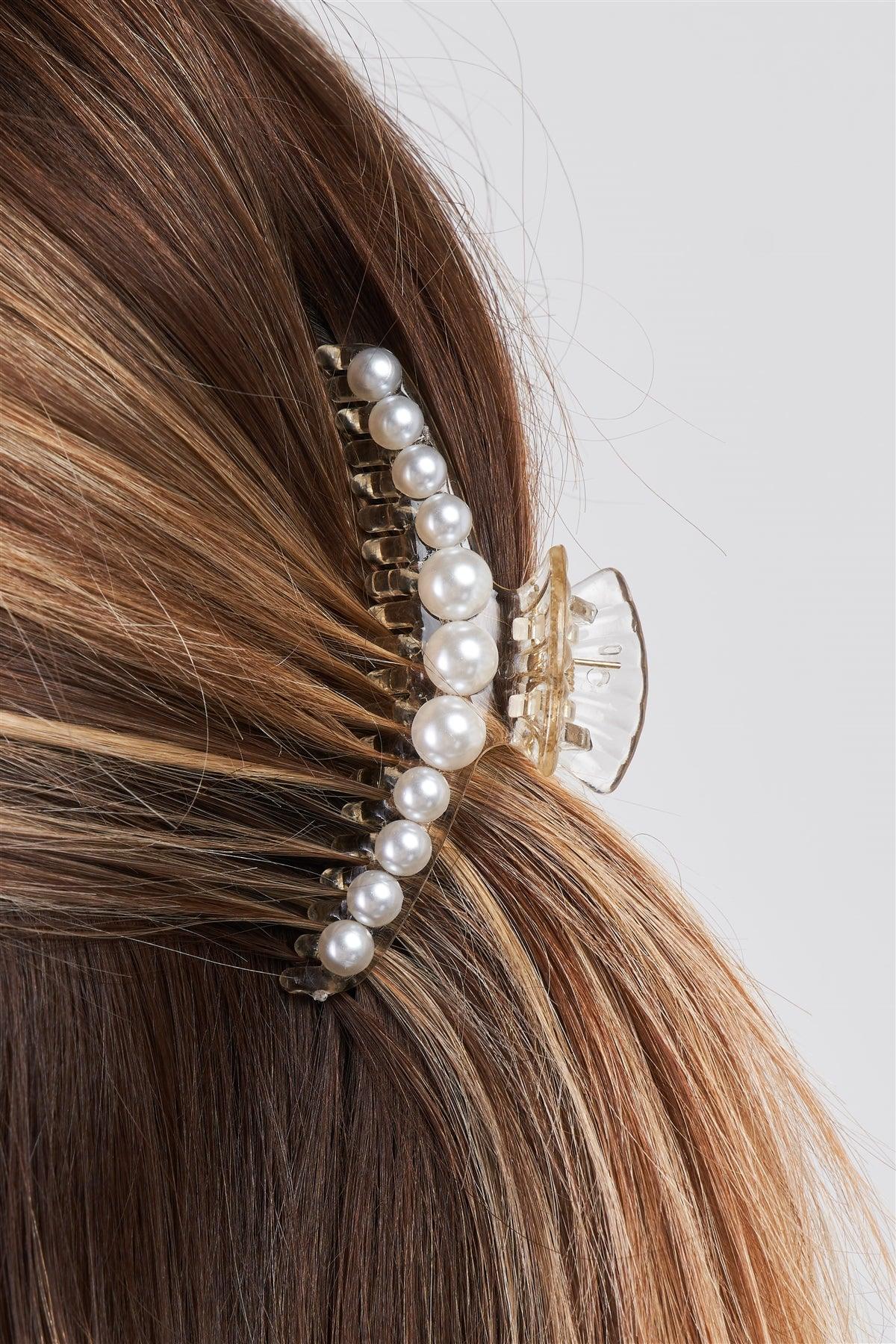 "Shell" White & Pearl Small Hair Clip /3 Pieces