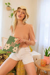 🖤 Item Features: Sherbert orange pink, solid color, crew neckline, juliette midi sleeves, unlined, semi-stretchy, not see through, casual, cute, girlish, everyday look, trendy, stylish
