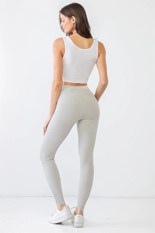 Silver Ribbed Stretchy Activewear Athletic Leggings /3-2-1Vendor:Doreli Group