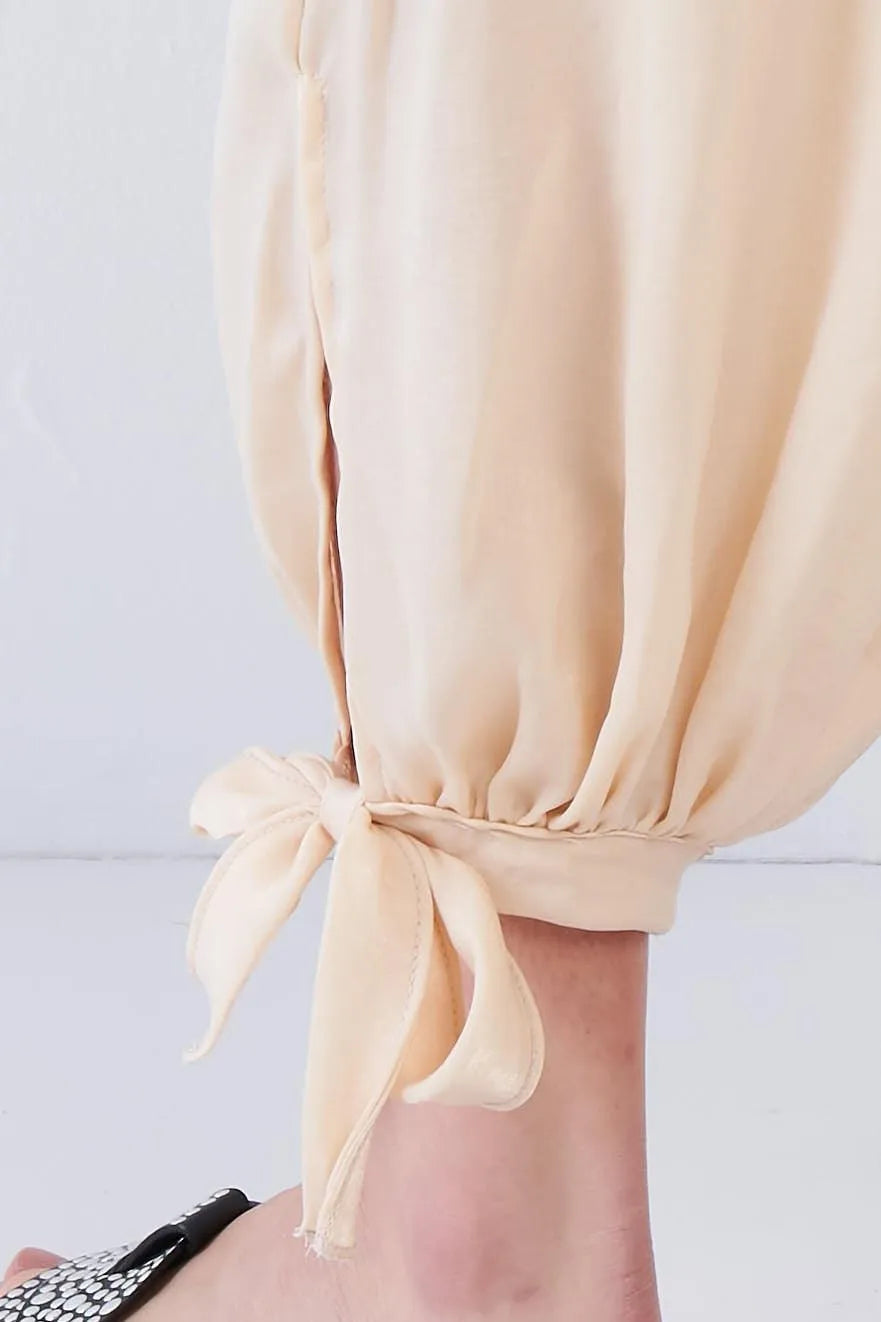 Silk Champagne Yellow Ankle Cut Out Semi-Sheer Jogger Pants /1-2-2-1