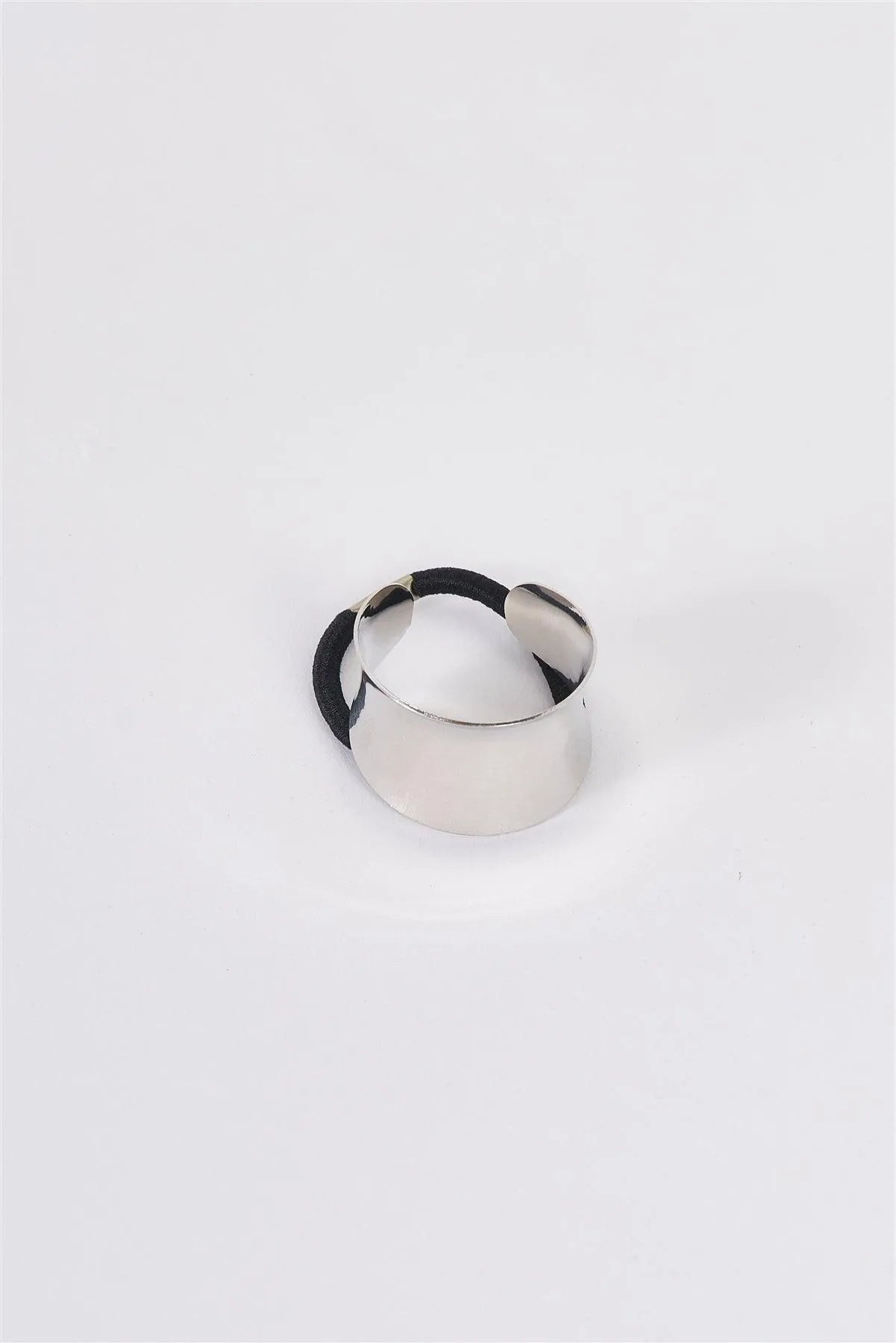 3pcs Silver Bent Open Cuff Metal Plate Elastic Hair Tie